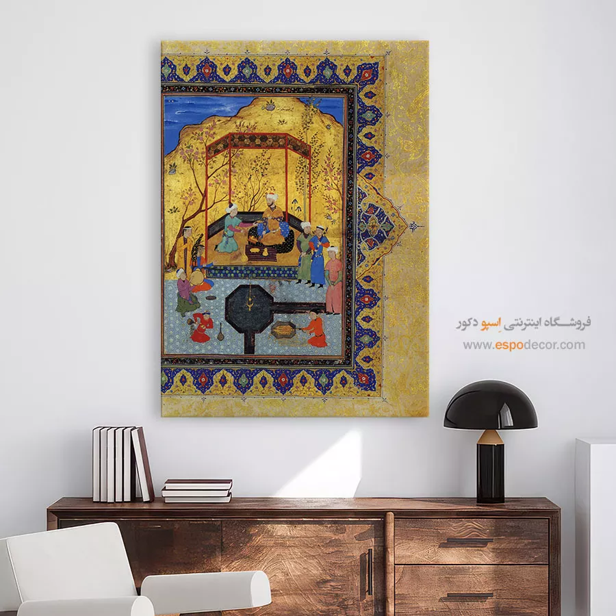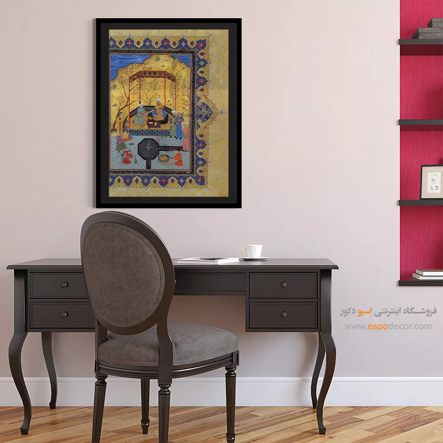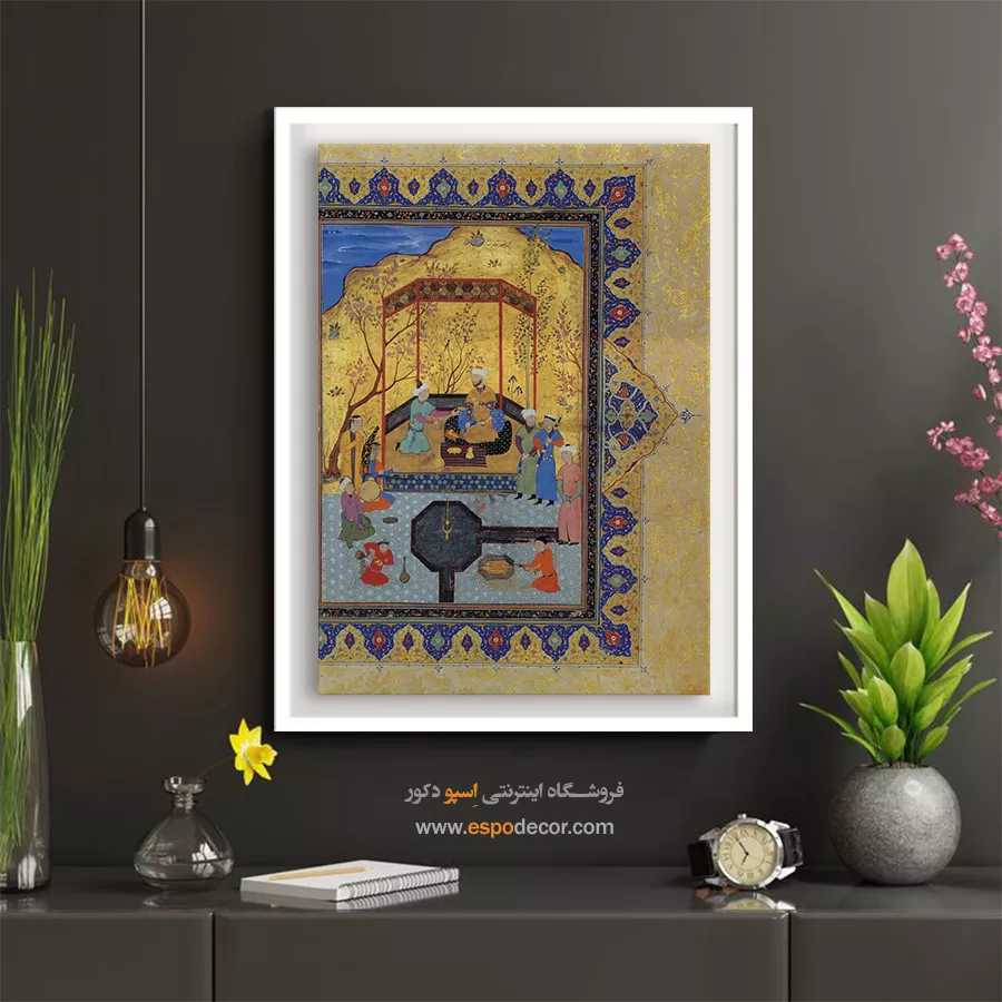 در ظرافت خطوط و درخشش رنگها، روایت هزارساله هنر مینیاتور و نگارگری ایرانی زنده میشود. این تابلو نقاشی ایرانی، یادگاری فاخر از میراث فرهنگی ایران برای خانهای آراسته و روحنواز است.