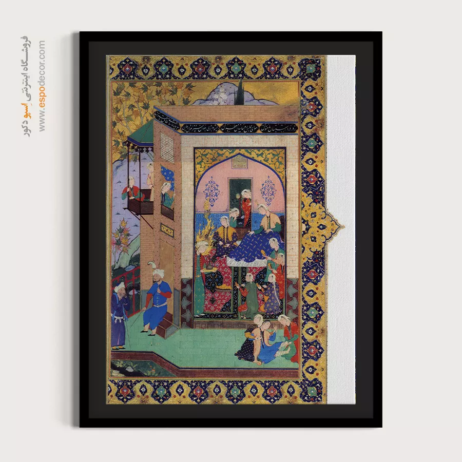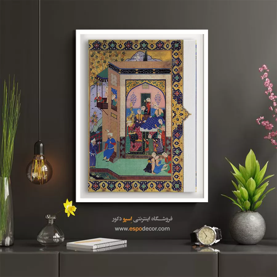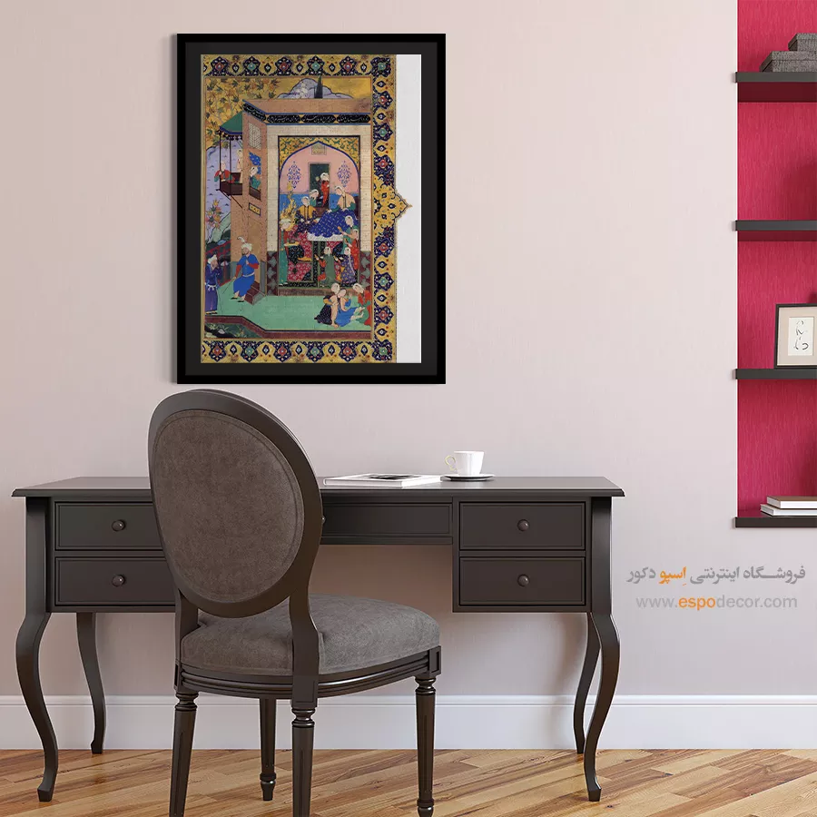 در ظرافت خطوط و درخشش رنگها، روایت هزارساله هنر مینیاتور و نگارگری ایرانی زنده میشود. این تابلو نقاشی ایرانی، یادگاری فاخر از میراث فرهنگی ایران برای خانهای آراسته و روحنواز است.