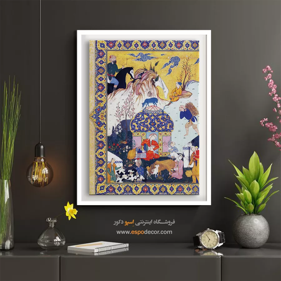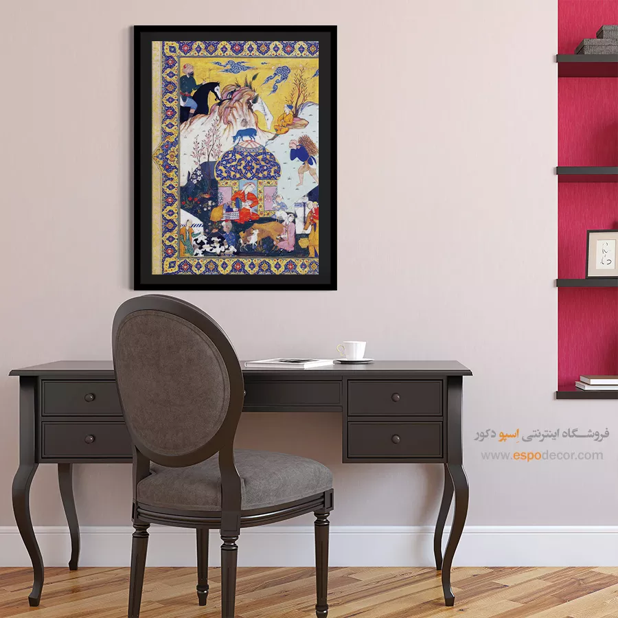 در ظرافت خطوط و درخشش رنگ‌ها، روایت هزارساله هنر مینیاتور و نگارگری ایرانی زنده می‌شود. این تابلو نقاشی ایرانی، یادگاری فاخر از میراث فرهنگی ایران برای خانه‌ای آراسته و روح‌نواز است.