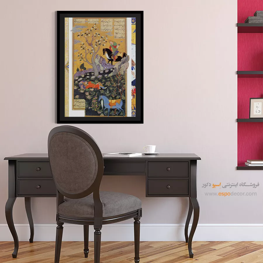 در ظرافت خطوط و درخشش رنگ‌ها، روایت هزارساله هنر مینیاتور و نگارگری ایرانی زنده می‌شود. این تابلو نقاشی ایرانی، یادگاری فاخر از میراث فرهنگی ایران برای خانه‌ای آراسته و روح‌نواز است.