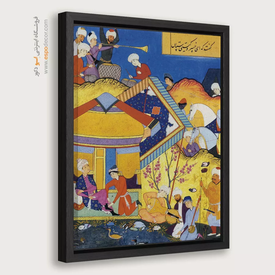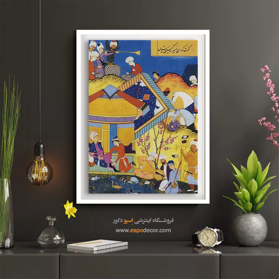 در ظرافت خطوط و درخشش رنگ‌ها، روایت هزارساله هنر مینیاتور و نگارگری ایرانی زنده می‌شود. این تابلو نقاشی ایرانی، یادگاری فاخر از میراث فرهنگی ایران برای خانه‌ای آراسته و روح‌نواز است.