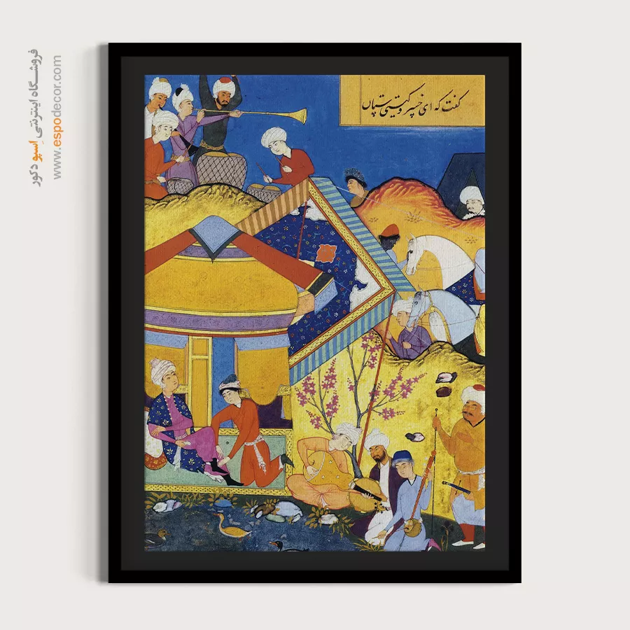 در ظرافت خطوط و درخشش رنگها، روایت هزارساله هنر مینیاتور و نگارگری ایرانی زنده میشود. این تابلو نقاشی ایرانی، یادگاری فاخر از میراث فرهنگی ایران برای خانهای آراسته و روحنواز است.