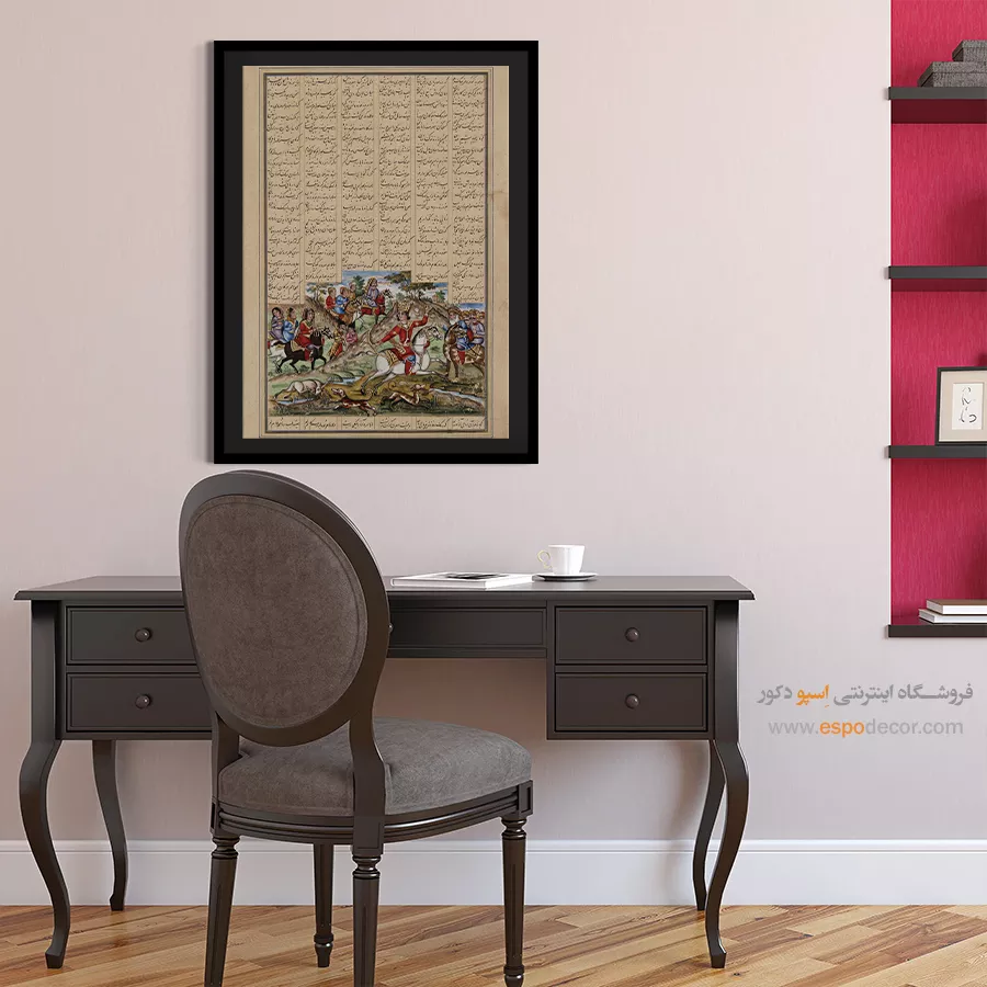 در ظرافت خطوط و درخشش رنگها، روایت هزارساله هنر مینیاتور و نگارگری ایرانی زنده میشود. این تابلو نقاشی ایرانی، یادگاری فاخر از میراث فرهنگی ایران برای خانهای آراسته و روحنواز است.