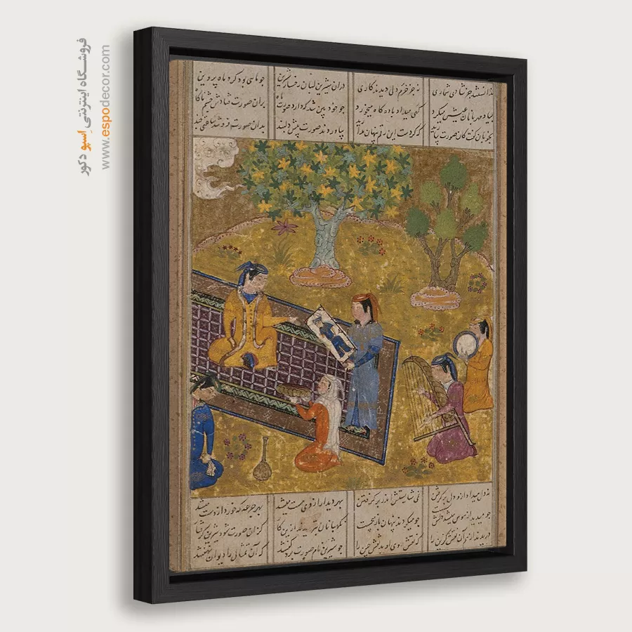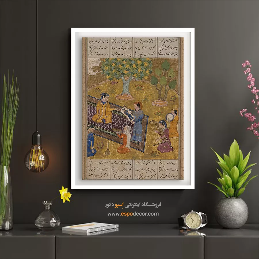 در ظرافت خطوط و درخشش رنگ‌ها، روایت هزارساله هنر مینیاتور و نگارگری ایرانی زنده می‌شود. این تابلو نقاشی ایرانی، یادگاری فاخر از میراث فرهنگی ایران برای خانه‌ای آراسته و روح‌نواز است.