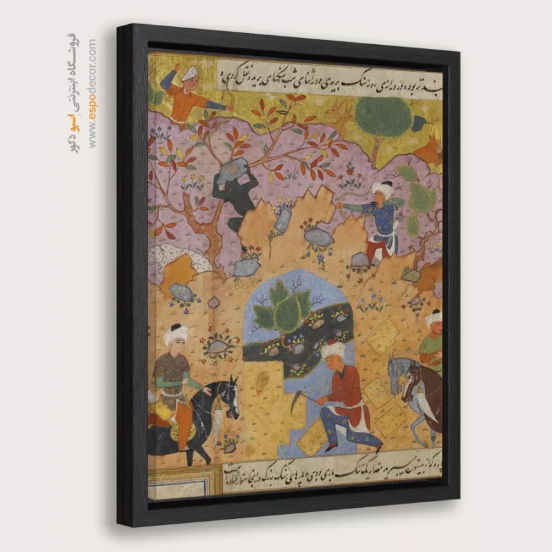 در ظرافت خطوط و درخشش رنگها، روایت هزارساله هنر مینیاتور و نگارگری ایرانی زنده میشود. این تابلو نقاشی ایرانی، یادگاری فاخر از میراث فرهنگی ایران برای خانهای آراسته و روحنواز است.