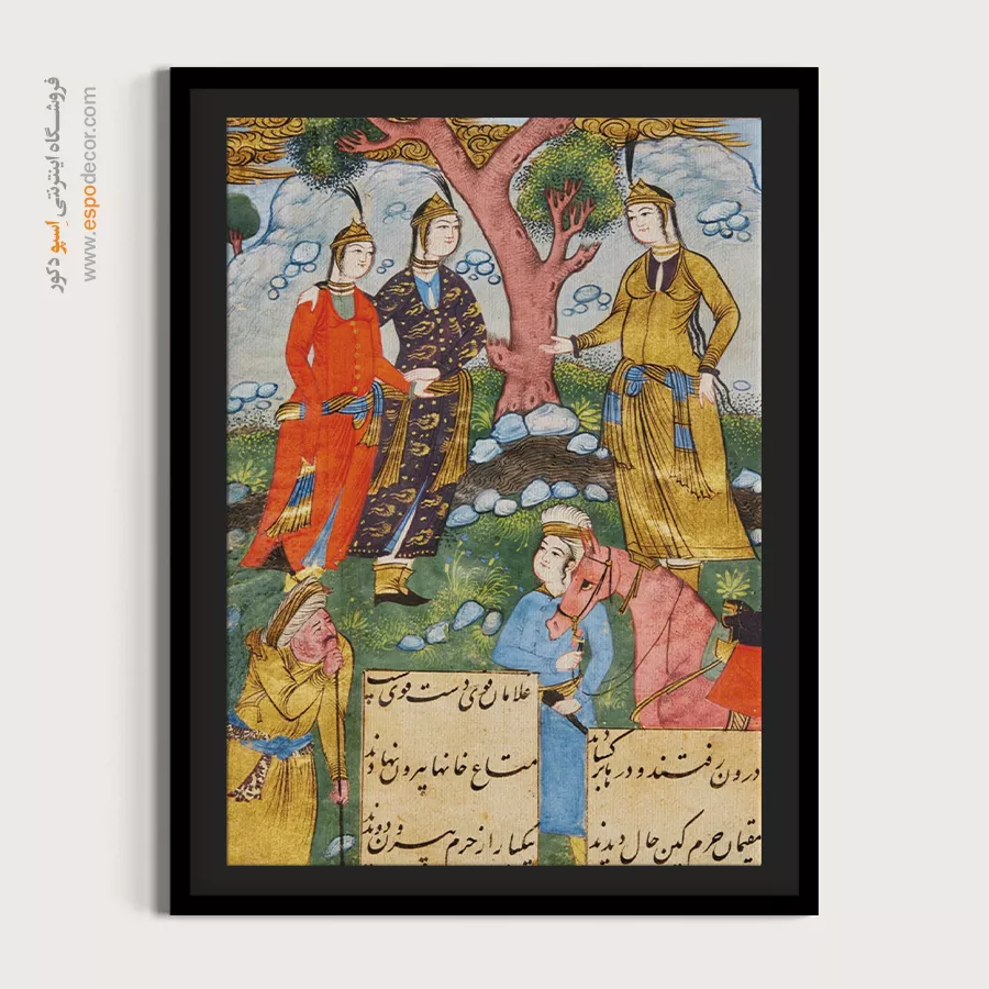 در دل هر نقش و رنگ، قصه‌ای کهن از سرزمین شعر و شکوه نهفته است. این تابلو نقاشی ایرانی برگرفته از اصالت نگارگری و ظرافت مینیاتورهای ماندگار، پلی میان تاریخ و دنیای امروز می‌سازد؛ گویی پنجره‌ای است به جهانی که در آن زیبایی و معنویت هم‌نشین‌اند.هر تابلو، برگ زرینی از نسخ خطی و هنر سنتی ایرانی است؛ سرشار از لطافت خطوط و رنگ‌هایی که به آرامی با چشم و دل سخن می‌گویند. با تماشای آن، می‌توان به عمق فرهنگ ایرانی سفر کرد و لمس کرد که چگونه گذر قرن‌ها نتوانسته فروغ این هنر جاودان را خاموش سازد.این تابلوها بر روی بوم‌های باکیفیت چاپ می‌شوند؛ بافت لطیف بوم و رنگ‌های زنده، جلوه‌ای طبیعی و هنری به اثر می‌بخشند. رنگ‌ها به گونه‌ای انتخاب شده‌اند که درخشان، ماندگار و مقاوم در برابر نور باشند؛ تا سالیان سال، زیبایی اصیل ایرانی در فضای خانه یا محل کارتان بدرخشد.فریم‌های محکم، ساختاری استوار به تابلو می‌بخشند و با طراحی ظریف خود، بر شکوه اثر می‌افزایند. سبک بودن تابلو و امکان نصب آسان، آن را برای هر نوع دکوراسیون مدرن یا کلاسیک مناسب می‌سازد. از اتاق نشیمن تا دفتر کار، این آثار همچون نگینی فاخر بر دیوار خواهند درخشید.هر اثر، فرصتی برای لمس دوباره‌ی هنر نگارگری و مینیاتور ایرانی است؛ هنری که در جزئی‌ترین خطوط، روح شاعرانه ایرانیان را بازمی‌تاباند. این تابلوها نه تنها تزیینی، بلکه یادآور هویت فرهنگی و زیبایی بی‌زمان ایران‌زمین‌اند.اگر به دنبال هدیه‌ای ماندگار یا اثری منحصر به فرد برای فضای زندگی‌تان هستید، این تابلو بوم نگارگری ایرانی انتخابی بی‌همتاست. ترکیب اصالت تاریخی با کیفیت مدرن چاپ، ارزش هنری و زیبایی را در یک قاب جاودانه به شما تقدیم می‌کند.
