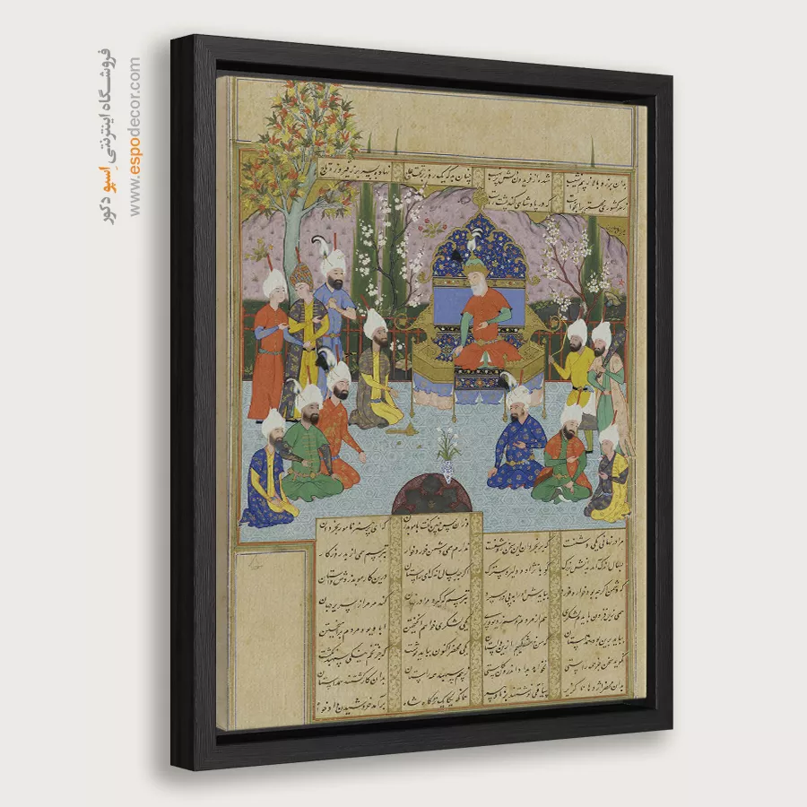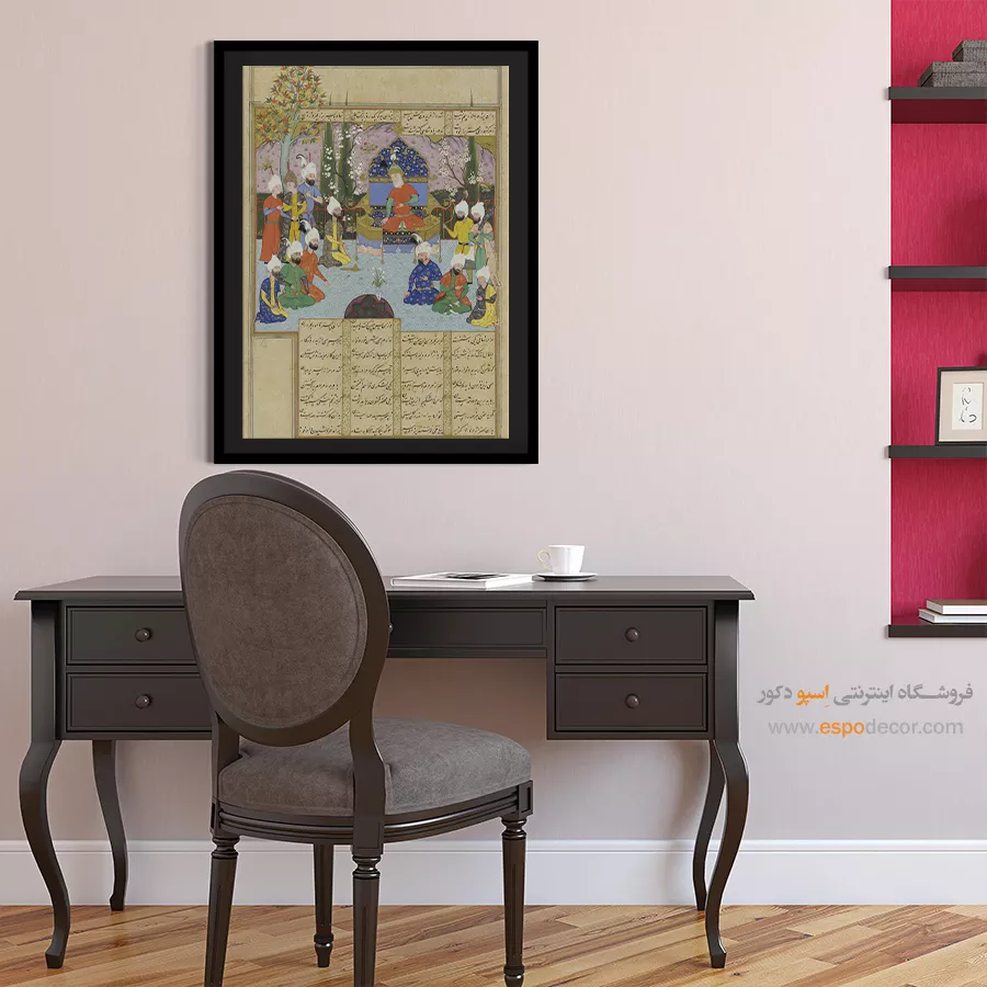 در ظرافت خطوط و درخشش رنگها، روایت هزارساله هنر مینیاتور و نگارگری ایرانی زنده میشود. این تابلو نقاشی ایرانی، یادگاری فاخر از میراث فرهنگی ایران برای خانهای آراسته و روحنواز است.