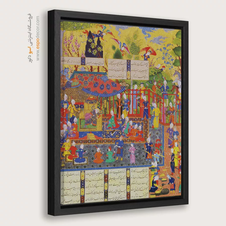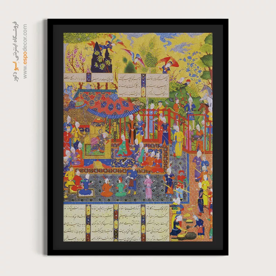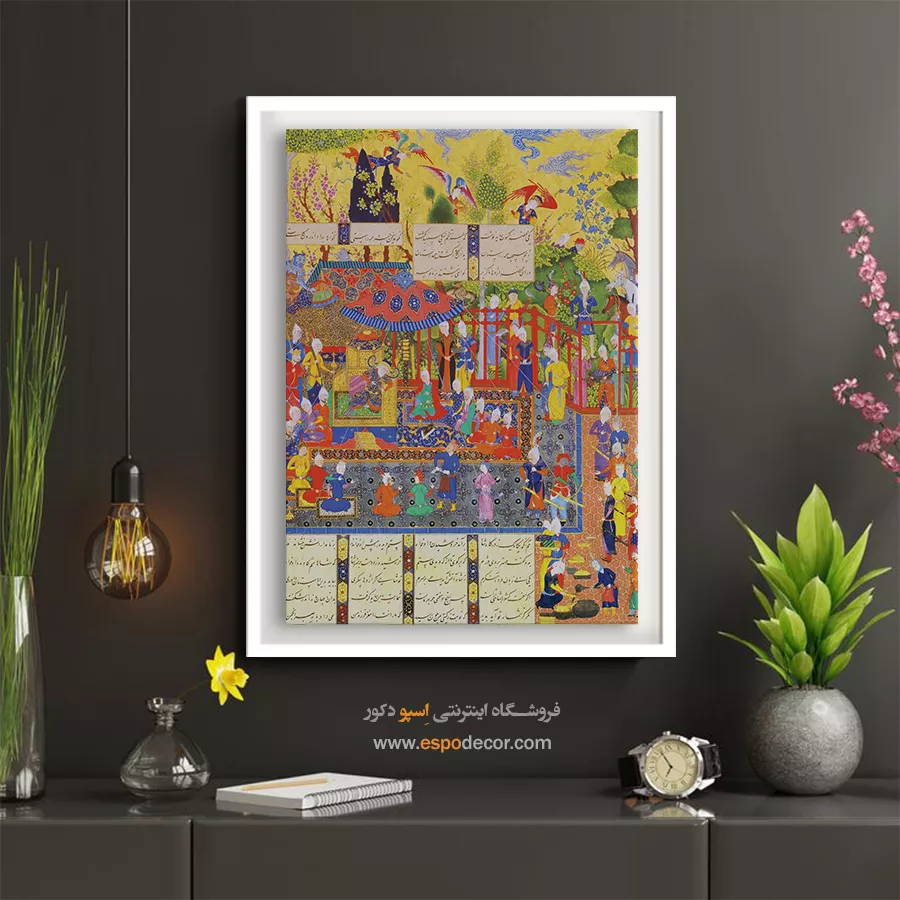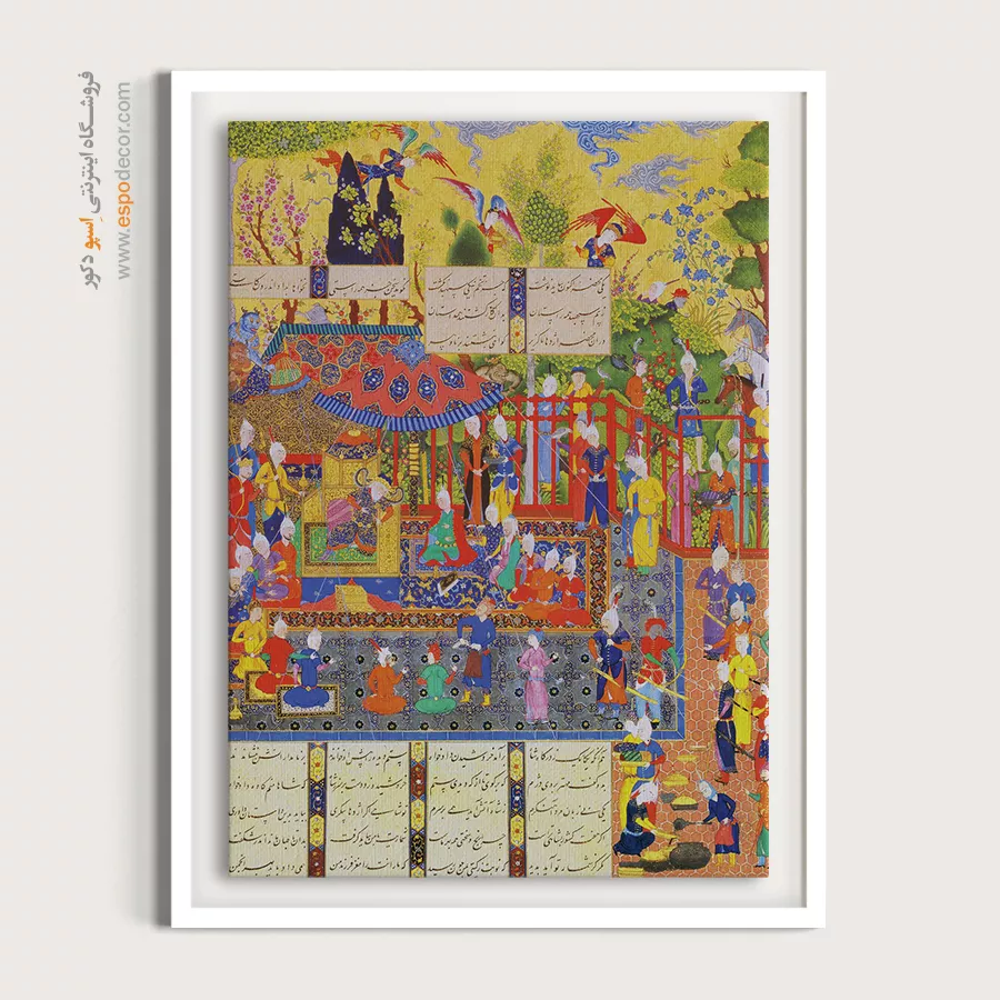 در ظرافت خطوط و درخشش رنگها، روایت هزارساله هنر مینیاتور و نگارگری ایرانی زنده میشود. این تابلو نقاشی ایرانی، یادگاری فاخر از میراث فرهنگی ایران برای خانهای آراسته و روحنواز است.