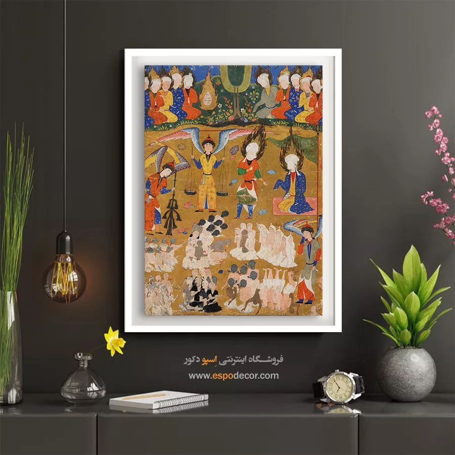 در ظرافت خطوط و درخشش رنگها، روایت هزارساله هنر مینیاتور و نگارگری ایرانی زنده میشود. این تابلو نقاشی ایرانی، یادگاری فاخر از میراث فرهنگی ایران برای خانهای آراسته و روحنواز است.