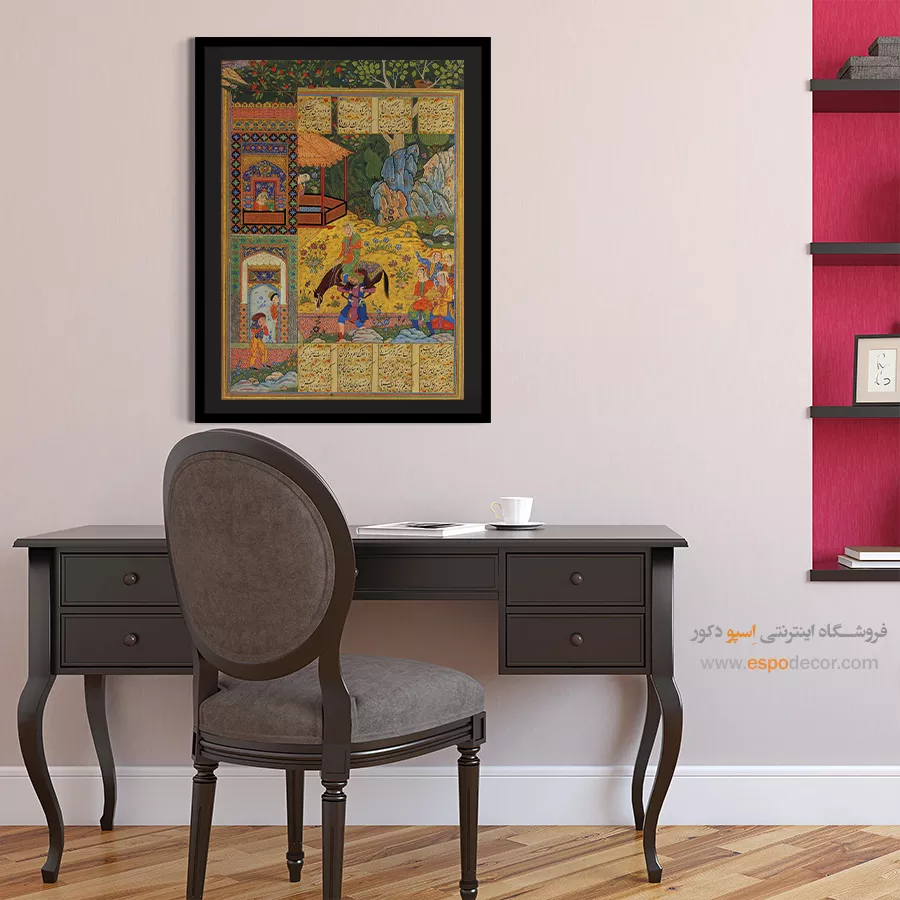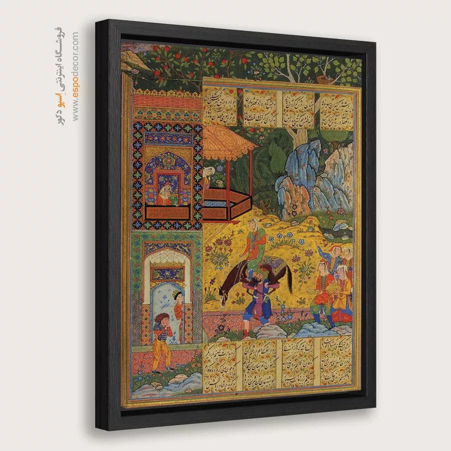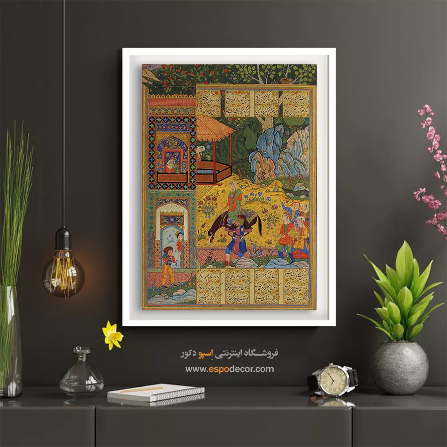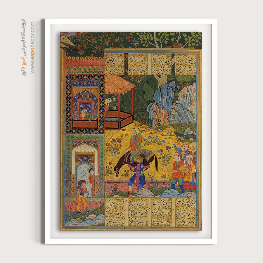 در ظرافت خطوط و درخشش رنگ‌ها، روایت هزارساله هنر مینیاتور و نگارگری ایرانی زنده می‌شود. این تابلو نقاشی ایرانی، یادگاری فاخر از میراث فرهنگی ایران برای خانه‌ای آراسته و روح‌نواز است.