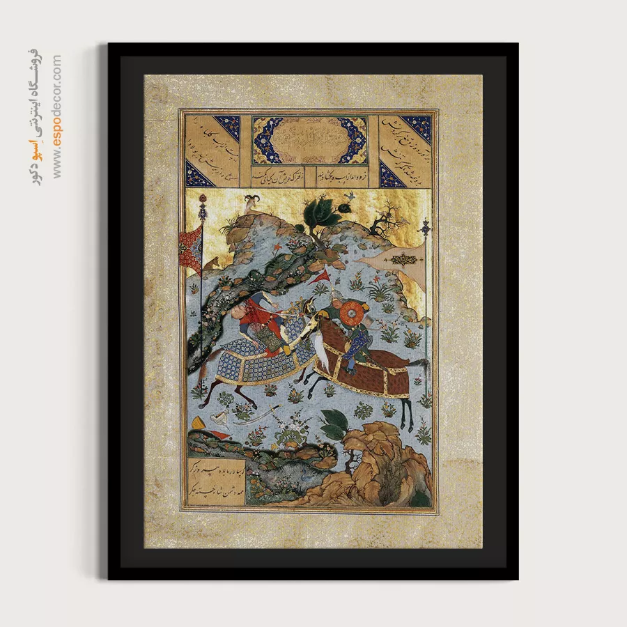 در دل هر نقش و رنگ، قصه‌ای کهن از سرزمین شعر و شکوه نهفته است. این تابلو نقاشی ایرانی برگرفته از اصالت نگارگری و ظرافت مینیاتورهای ماندگار، پلی میان تاریخ و دنیای امروز می‌سازد؛ گویی پنجره‌ای است به جهانی که در آن زیبایی و معنویت هم‌نشین‌اند.هر تابلو، برگ زرینی از نسخ خطی و هنر سنتی ایرانی است؛ سرشار از لطافت خطوط و رنگ‌هایی که به آرامی با چشم و دل سخن می‌گویند. با تماشای آن، می‌توان به عمق فرهنگ ایرانی سفر کرد و لمس کرد که چگونه گذر قرن‌ها نتوانسته فروغ این هنر جاودان را خاموش سازد.این تابلوها بر روی بوم‌های باکیفیت چاپ می‌شوند؛ بافت لطیف بوم و رنگ‌های زنده، جلوه‌ای طبیعی و هنری به اثر می‌بخشند. رنگ‌ها به گونه‌ای انتخاب شده‌اند که درخشان، ماندگار و مقاوم در برابر نور باشند؛ تا سالیان سال، زیبایی اصیل ایرانی در فضای خانه یا محل کارتان بدرخشد.فریم‌های محکم، ساختاری استوار به تابلو می‌بخشند و با طراحی ظریف خود، بر شکوه اثر می‌افزایند. سبک بودن تابلو و امکان نصب آسان، آن را برای هر نوع دکوراسیون مدرن یا کلاسیک مناسب می‌سازد. از اتاق نشیمن تا دفتر کار، این آثار همچون نگینی فاخر بر دیوار خواهند درخشید.هر اثر، فرصتی برای لمس دوباره‌ی هنر نگارگری و مینیاتور ایرانی است؛ هنری که در جزئی‌ترین خطوط، روح شاعرانه ایرانیان را بازمی‌تاباند. این تابلوها نه تنها تزیینی، بلکه یادآور هویت فرهنگی و زیبایی بی‌زمان ایران‌زمین‌اند.اگر به دنبال هدیه‌ای ماندگار یا اثری منحصر به فرد برای فضای زندگی‌تان هستید، این تابلو بوم نگارگری ایرانی انتخابی بی‌همتاست. ترکیب اصالت تاریخی با کیفیت مدرن چاپ، ارزش هنری و زیبایی را در یک قاب جاودانه به شما تقدیم می‌کند.