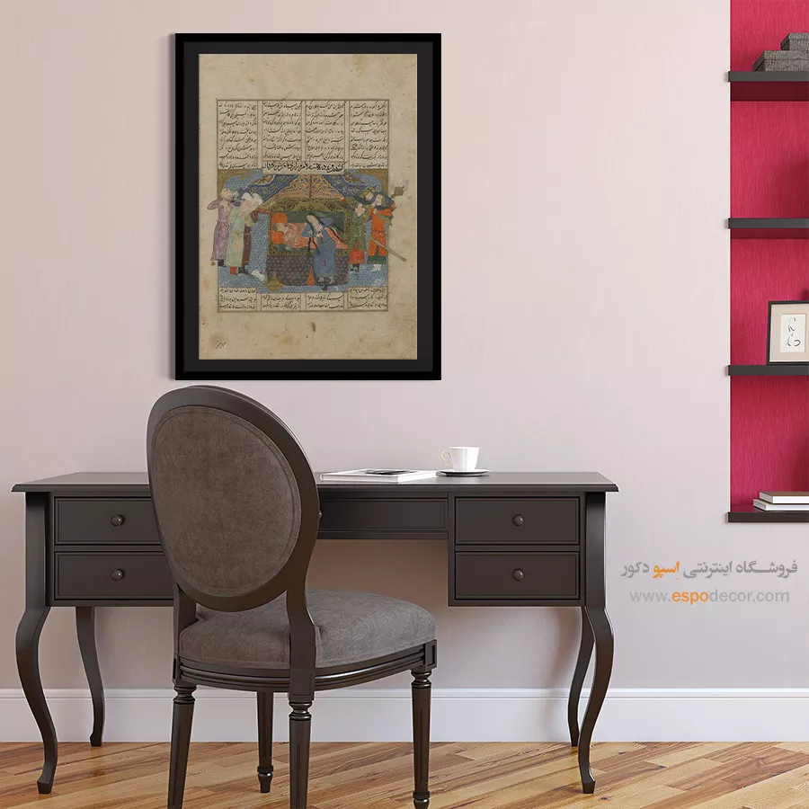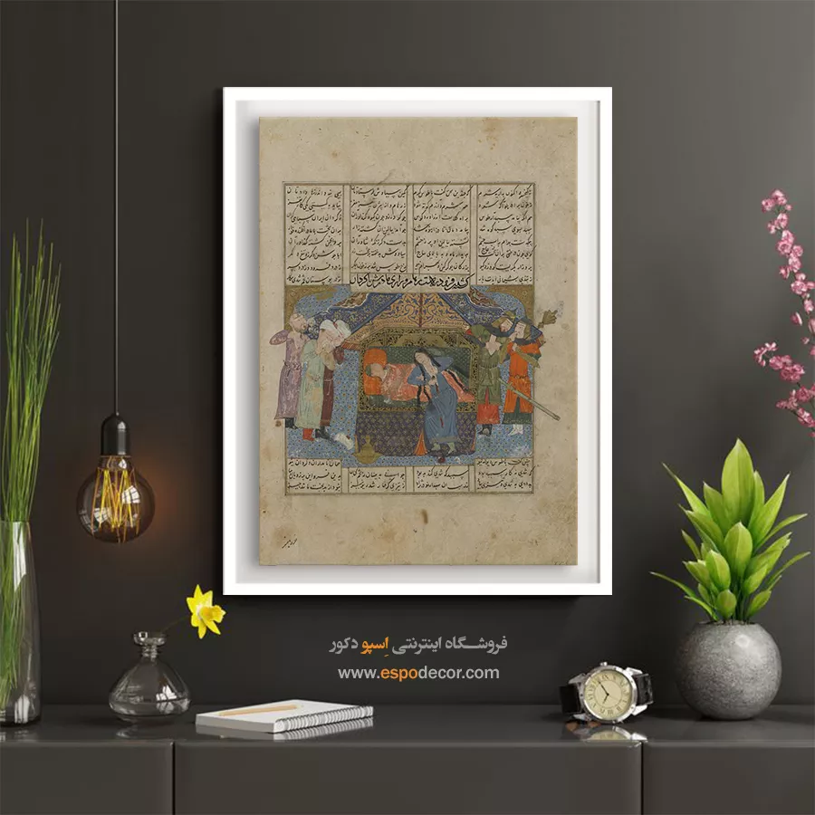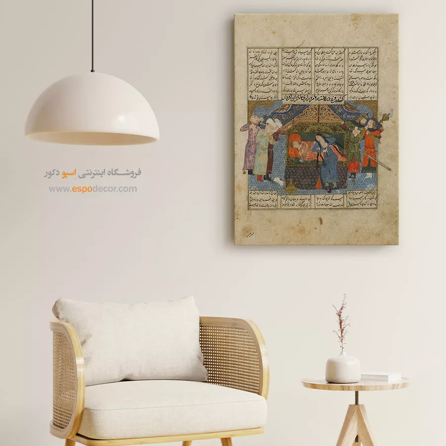 در ظرافت خطوط و درخشش رنگها، روایت هزارساله هنر مینیاتور و نگارگری ایرانی زنده میشود. این تابلو نقاشی ایرانی، یادگاری فاخر از میراث فرهنگی ایران برای خانهای آراسته و روحنواز است.