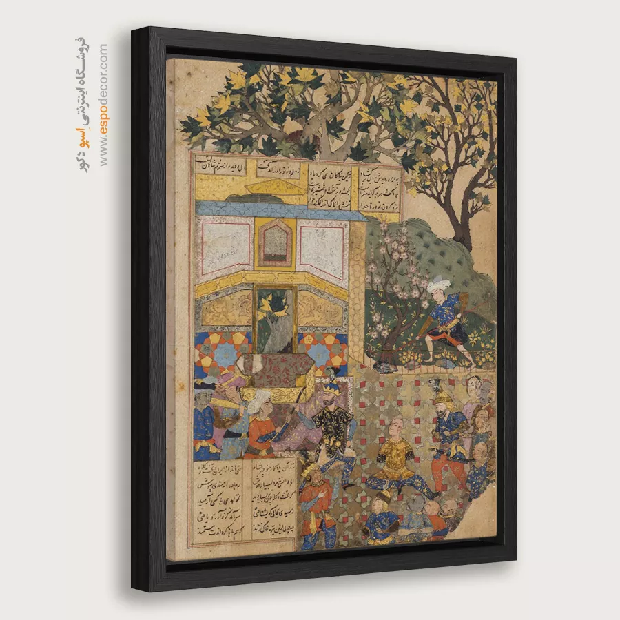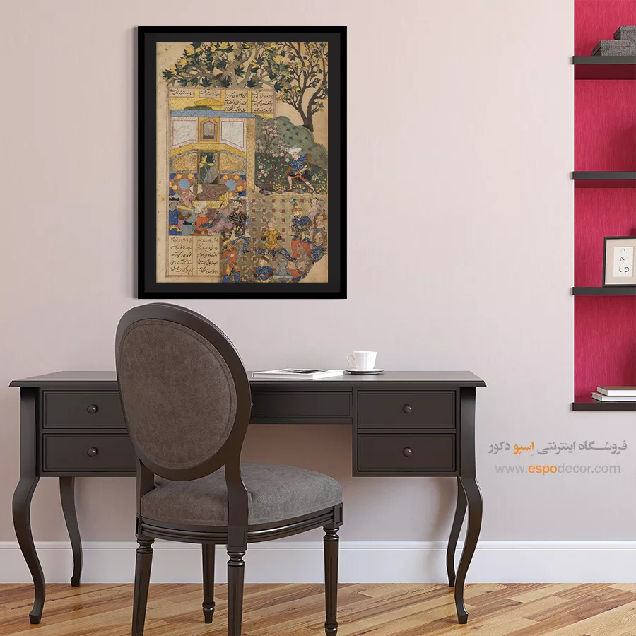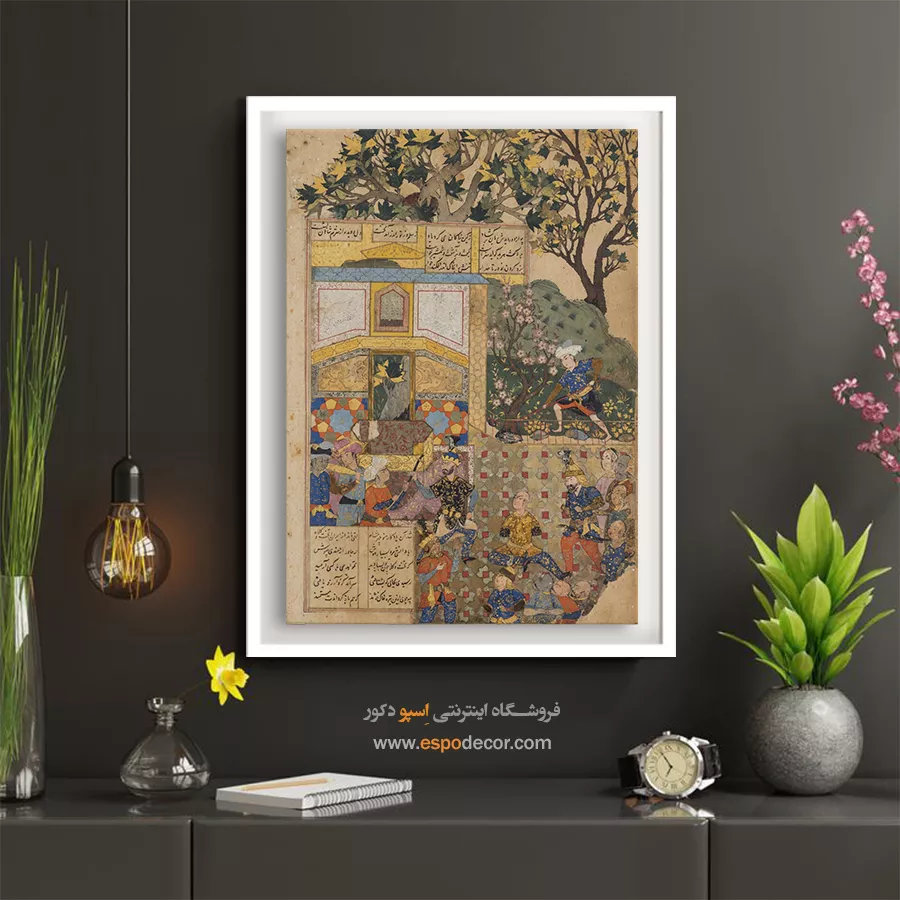 در ظرافت خطوط و درخشش رنگ‌ها، روایت هزارساله هنر مینیاتور و نگارگری ایرانی زنده می‌شود. این تابلو نقاشی ایرانی، یادگاری فاخر از میراث فرهنگی ایران برای خانه‌ای آراسته و روح‌نواز است.