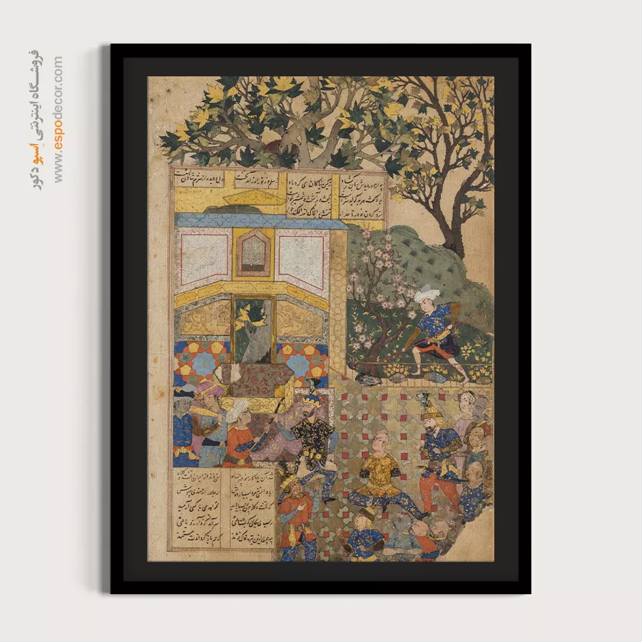 در ظرافت خطوط و درخشش رنگها، روایت هزارساله هنر مینیاتور و نگارگری ایرانی زنده میشود. این تابلو نقاشی ایرانی، یادگاری فاخر از میراث فرهنگی ایران برای خانهای آراسته و روحنواز است.