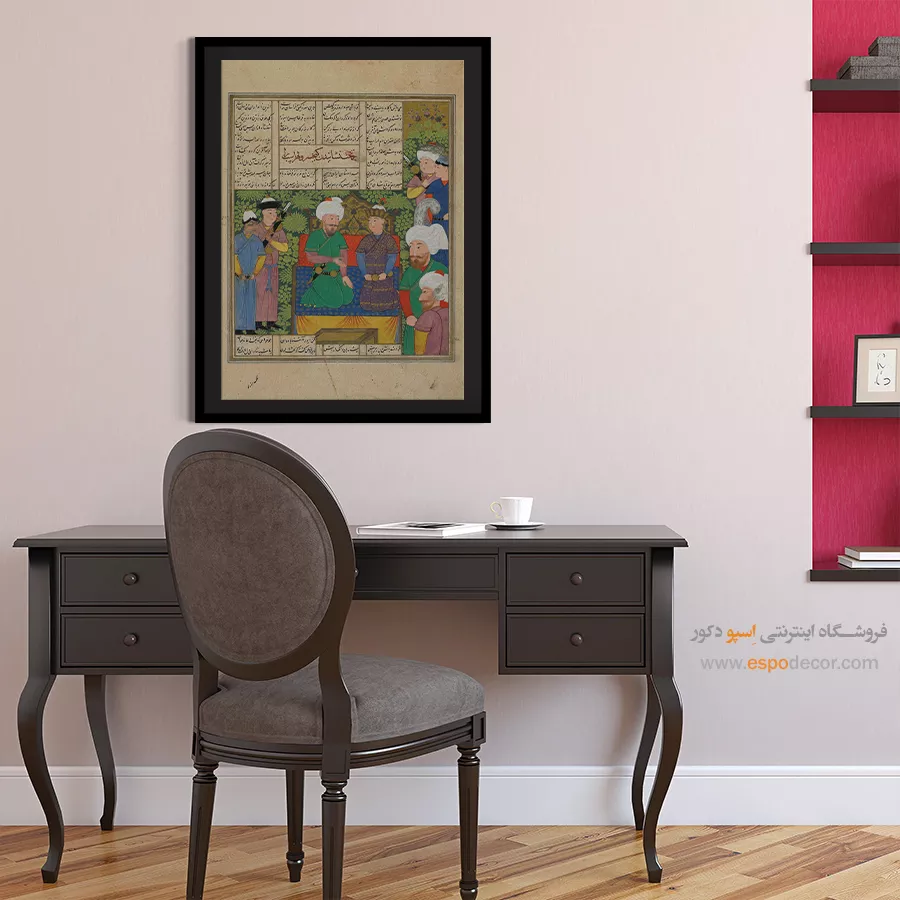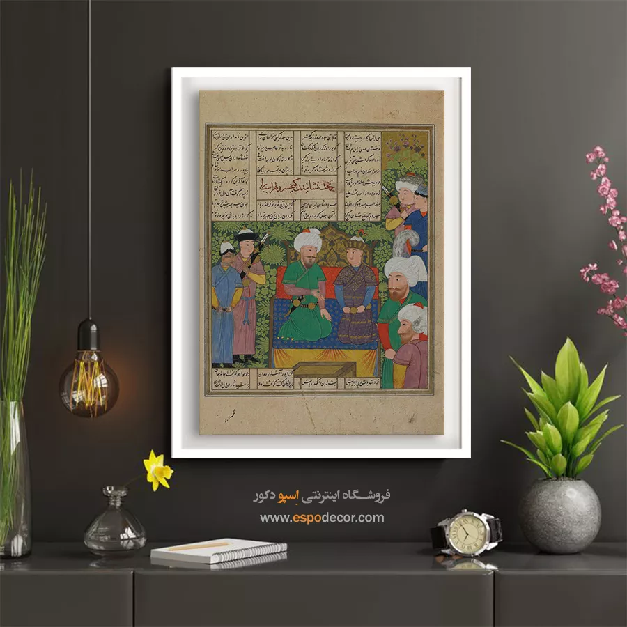 در ظرافت خطوط و درخشش رنگها، روایت هزارساله هنر مینیاتور و نگارگری ایرانی زنده میشود. این تابلو نقاشی ایرانی، یادگاری فاخر از میراث فرهنگی ایران برای خانهای آراسته و روحنواز است.