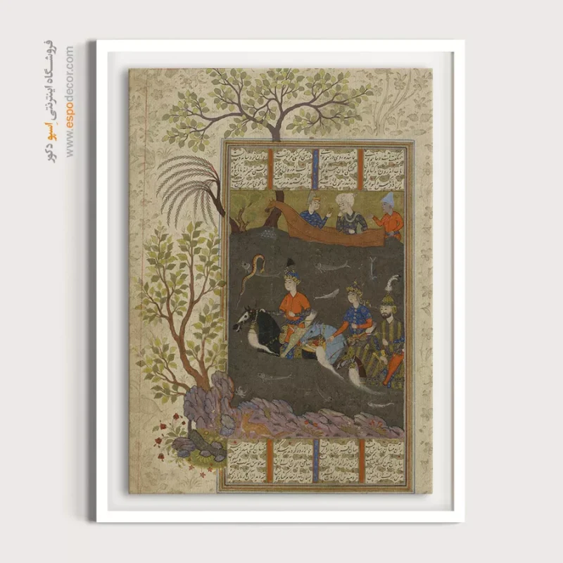 گذر کردن فرنگیس گیو و خسرو از جیحون – تابلو نقاشی ایرانی