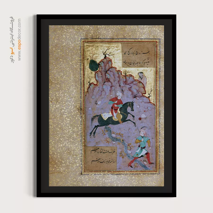 در دل هر نقش و رنگ، قصه‌ای کهن از سرزمین شعر و شکوه نهفته است. این تابلو نقاشی ایرانی برگرفته از اصالت نگارگری و ظرافت مینیاتورهای ماندگار، پلی میان تاریخ و دنیای امروز می‌سازد؛ گویی پنجره‌ای است به جهانی که در آن زیبایی و معنویت هم‌نشین‌اند.هر تابلو، برگ زرینی از نسخ خطی و هنر سنتی ایرانی است؛ سرشار از لطافت خطوط و رنگ‌هایی که به آرامی با چشم و دل سخن می‌گویند. با تماشای آن، می‌توان به عمق فرهنگ ایرانی سفر کرد و لمس کرد که چگونه گذر قرن‌ها نتوانسته فروغ این هنر جاودان را خاموش سازد.این تابلوها بر روی بوم‌های باکیفیت چاپ می‌شوند؛ بافت لطیف بوم و رنگ‌های زنده، جلوه‌ای طبیعی و هنری به اثر می‌بخشند. رنگ‌ها به گونه‌ای انتخاب شده‌اند که درخشان، ماندگار و مقاوم در برابر نور باشند؛ تا سالیان سال، زیبایی اصیل ایرانی در فضای خانه یا محل کارتان بدرخشد.فریم‌های محکم، ساختاری استوار به تابلو می‌بخشند و با طراحی ظریف خود، بر شکوه اثر می‌افزایند. سبک بودن تابلو و امکان نصب آسان، آن را برای هر نوع دکوراسیون مدرن یا کلاسیک مناسب می‌سازد. از اتاق نشیمن تا دفتر کار، این آثار همچون نگینی فاخر بر دیوار خواهند درخشید.هر اثر، فرصتی برای لمس دوباره‌ی هنر نگارگری و مینیاتور ایرانی است؛ هنری که در جزئی‌ترین خطوط، روح شاعرانه ایرانیان را بازمی‌تاباند. این تابلوها نه تنها تزیینی، بلکه یادآور هویت فرهنگی و زیبایی بی‌زمان ایران‌زمین‌اند.اگر به دنبال هدیه‌ای ماندگار یا اثری منحصر به فرد برای فضای زندگی‌تان هستید، این تابلو بوم نگارگری ایرانی انتخابی بی‌همتاست. ترکیب اصالت تاریخی با کیفیت مدرن چاپ، ارزش هنری و زیبایی را در یک قاب جاودانه به شما تقدیم می‌کند.