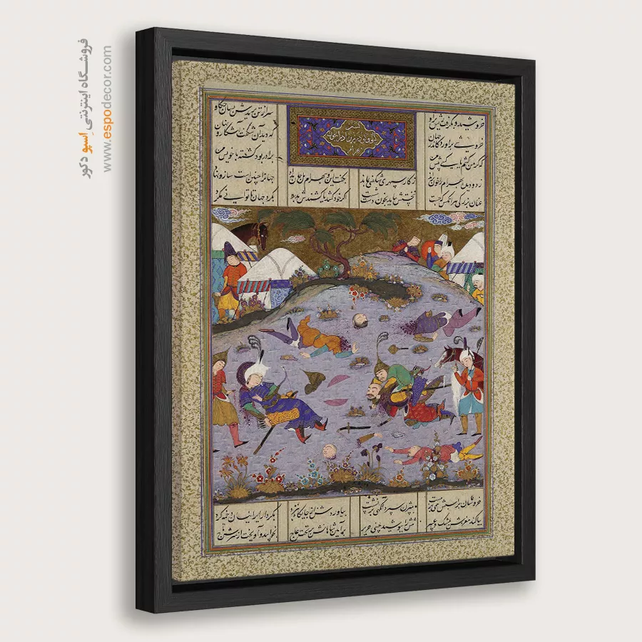 گیو با کشتن تژاو، انتقام بهرام را می‌گیرد – تابلو نقاشی ایرانی