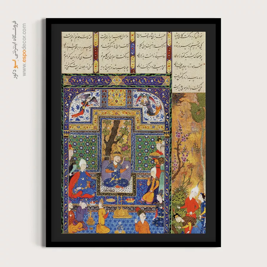 در ظرافت خطوط و درخشش رنگها، روایت هزارساله هنر مینیاتور و نگارگری ایرانی زنده میشود. این تابلو نقاشی ایرانی، یادگاری فاخر از میراث فرهنگی ایران برای خانهای آراسته و روحنواز است.