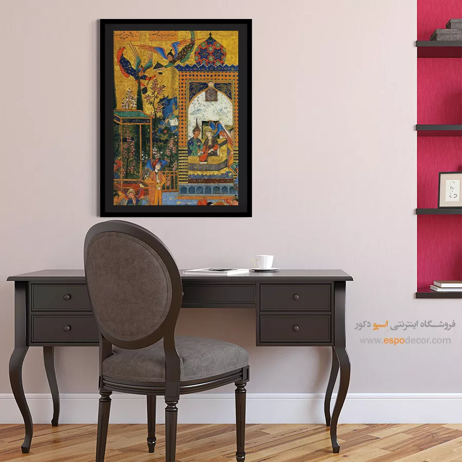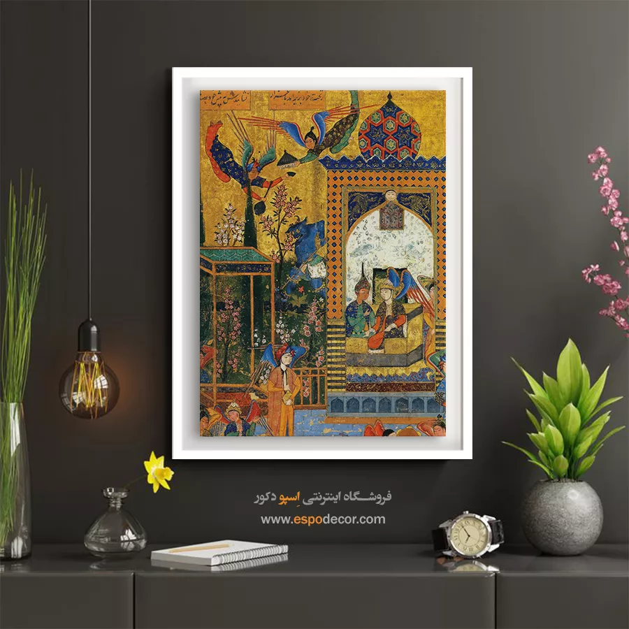 در ظرافت خطوط و درخشش رنگ‌ها، روایت هزارساله هنر مینیاتور و نگارگری ایرانی زنده می‌شود. این تابلو نقاشی ایرانی، یادگاری فاخر از میراث فرهنگی ایران برای خانه‌ای آراسته و روح‌نواز است.