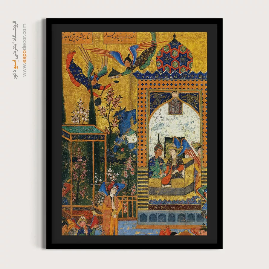 در ظرافت خطوط و درخشش رنگها، روایت هزارساله هنر مینیاتور و نگارگری ایرانی زنده میشود. این تابلو نقاشی ایرانی، یادگاری فاخر از میراث فرهنگی ایران برای خانهای آراسته و روحنواز است.