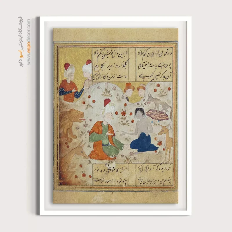 در ظرافت خطوط و درخشش رنگها، روایت هزارساله هنر مینیاتور و نگارگری ایرانی زنده میشود. این تابلو نقاشی ایرانی، یادگاری فاخر از میراث فرهنگی ایران برای خانهای آراسته و روحنواز است.