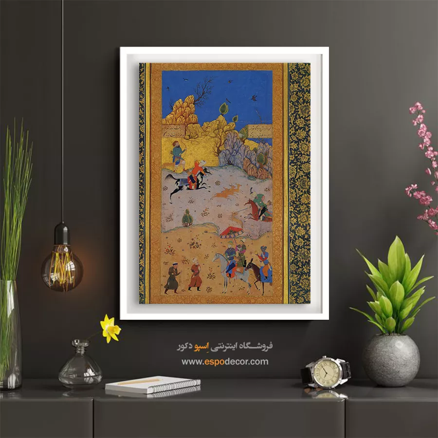 در ظرافت خطوط و درخشش رنگها، روایت هزارساله هنر مینیاتور و نگارگری ایرانی زنده میشود. این تابلو نقاشی ایرانی، یادگاری فاخر از میراث فرهنگی ایران برای خانهای آراسته و روحنواز است.