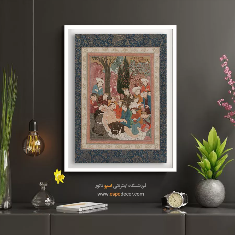 در ظرافت خطوط و درخشش رنگها، روایت هزارساله هنر مینیاتور و نگارگری ایرانی زنده میشود. این تابلو نقاشی ایرانی، یادگاری فاخر از میراث فرهنگی ایران برای خانهای آراسته و روحنواز است.