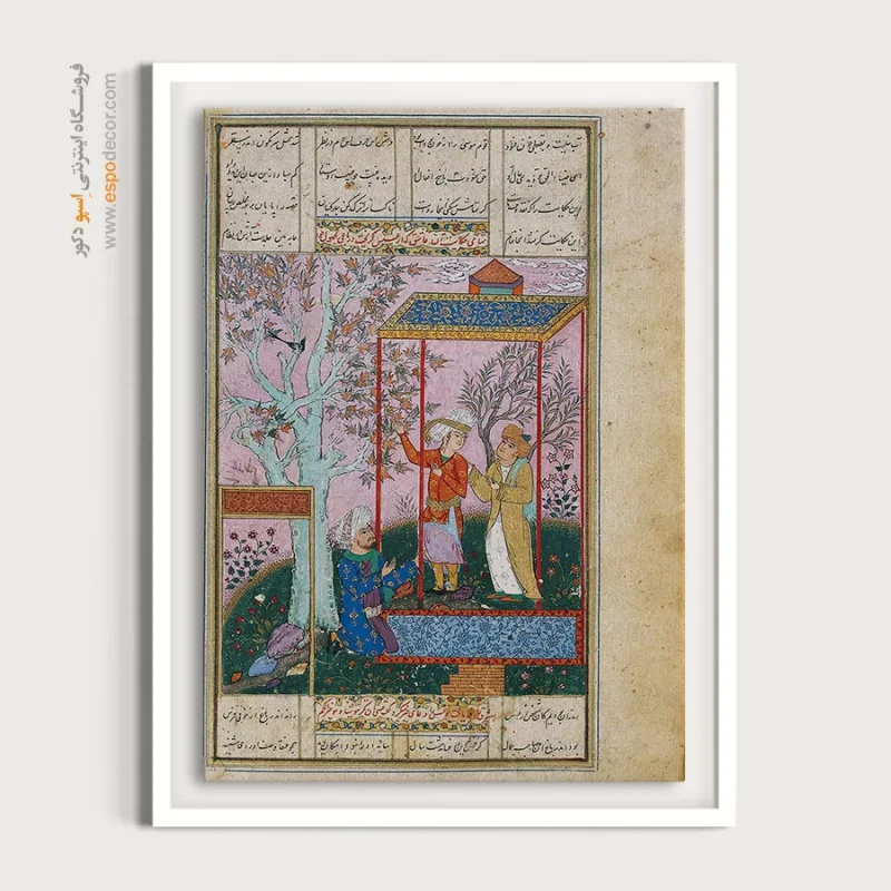 در ظرافت خطوط و درخشش رنگها، روایت هزارساله هنر مینیاتور و نگارگری ایرانی زنده میشود. این تابلو نقاشی ایرانی، یادگاری فاخر از میراث فرهنگی ایران برای خانهای آراسته و روحنواز است.