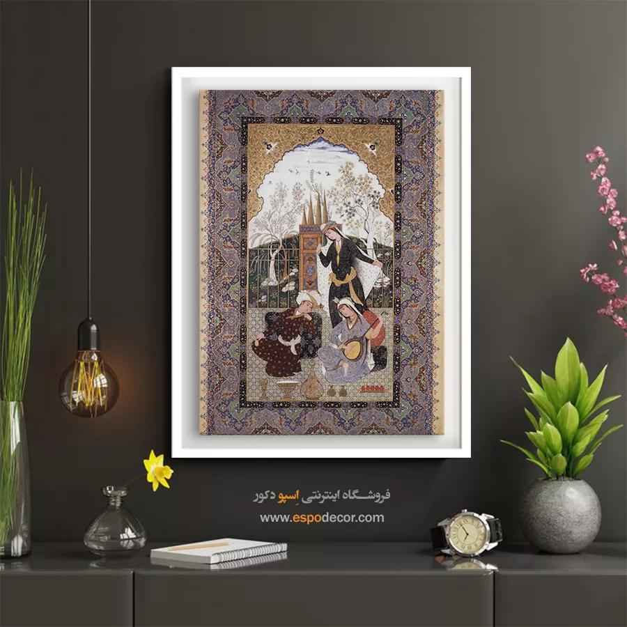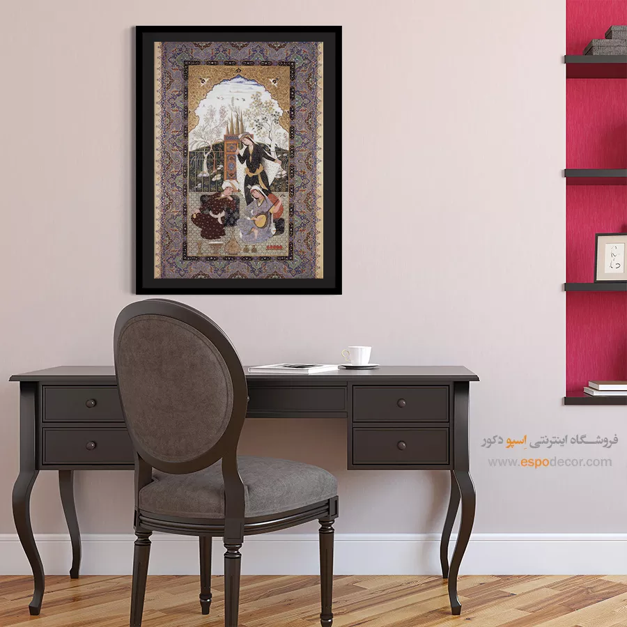 در ظرافت خطوط و درخشش رنگها، روایت هزارساله هنر مینیاتور و نگارگری ایرانی زنده میشود. این تابلو نقاشی ایرانی، یادگاری فاخر از میراث فرهنگی ایران برای خانهای آراسته و روحنواز است.