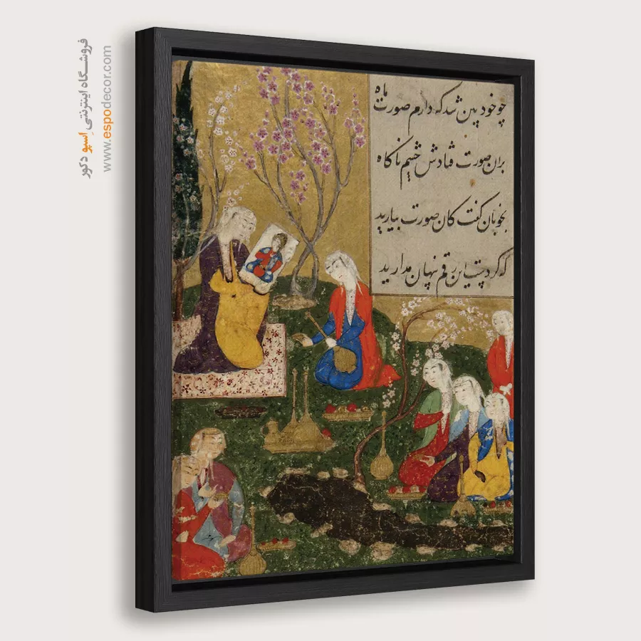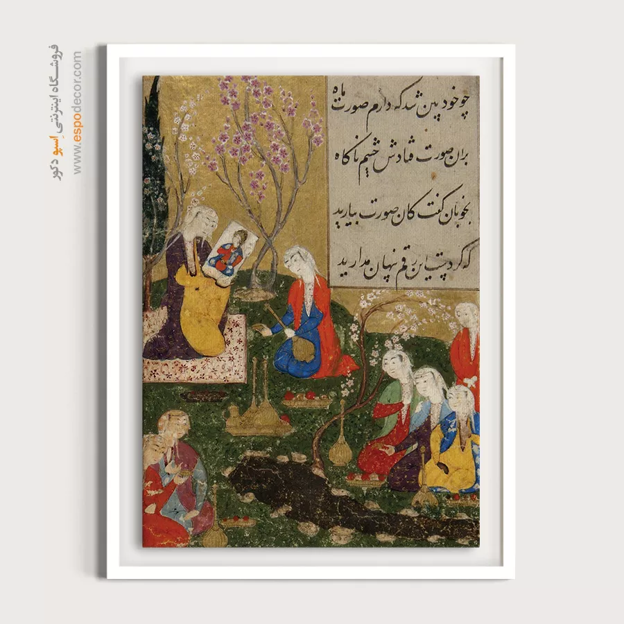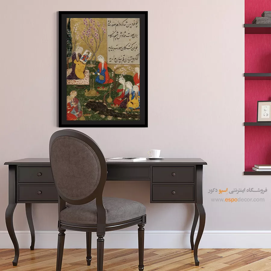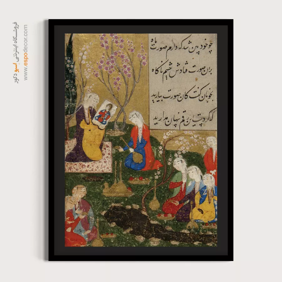 در ظرافت خطوط و درخشش رنگها، روایت هزارساله هنر مینیاتور و نگارگری ایرانی زنده میشود. این تابلو نقاشی ایرانی، یادگاری فاخر از میراث فرهنگی ایران برای خانهای آراسته و روحنواز است.