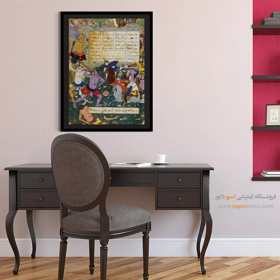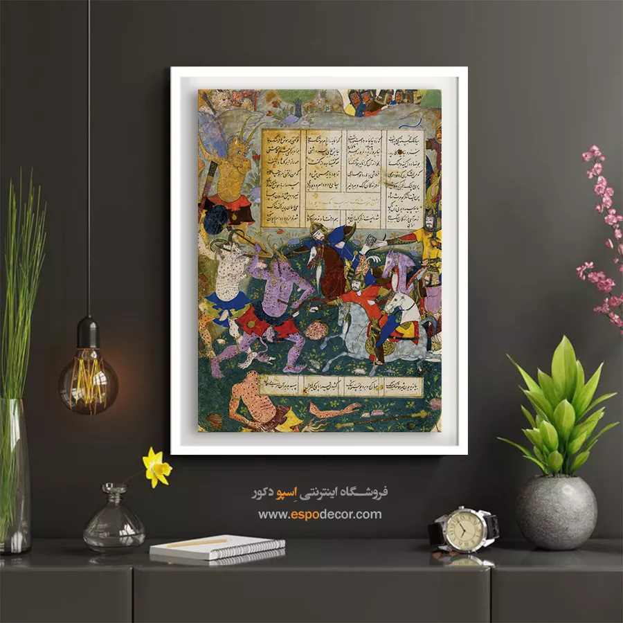 در ظرافت خطوط و درخشش رنگها، روایت هزارساله هنر مینیاتور و نگارگری ایرانی زنده میشود. این تابلو نقاشی ایرانی، یادگاری فاخر از میراث فرهنگی ایران برای خانهای آراسته و روحنواز است.