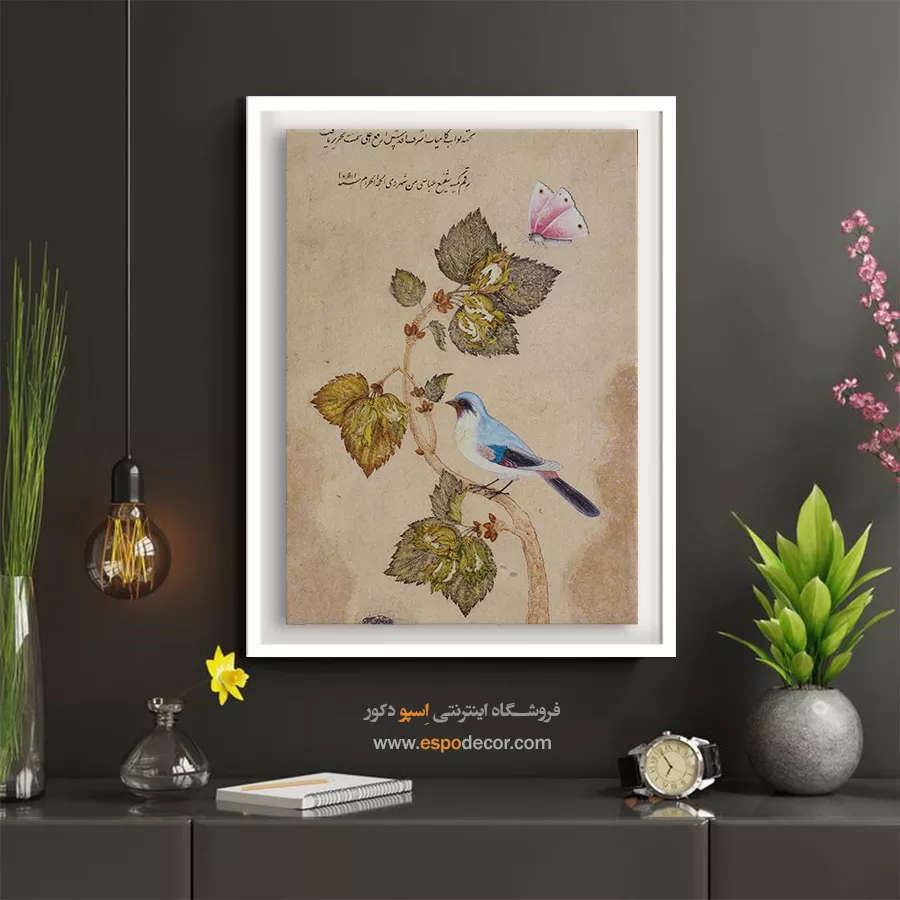 پرنده و شاخه فندق – تابلو نقاشی ایرانی