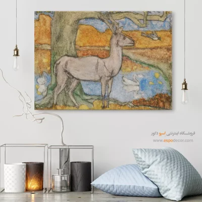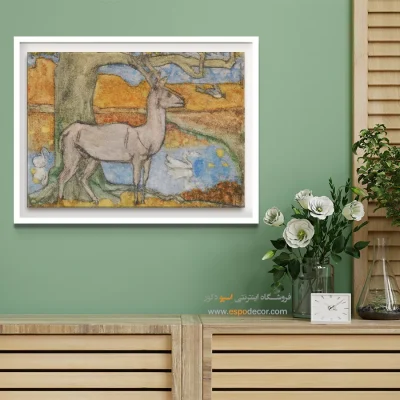 • استفاده از تابلویی با رنگ خنثی در پس‌زمینه: رنگ‌های سفید، خاکستری یا بژ، در حالی که رنگ اصلی دیوار یا رنگ‌های جزئی مبلمان و اکسسوری‌ها در طرح آن تکرار شده باشد. این روش تعادل را در فضا تضمین کرده و از شلوغی بصری جلوگیری می‌کند.