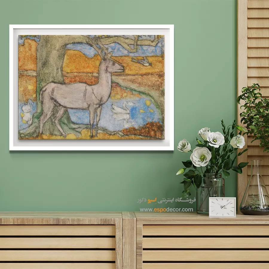 • انتخاب رنگ‌های مکمل یا متضاد: مانند تابلویی با تناژ نارنجی برای دیوار آبی، که تضاد جذاب و پویایی ایجاد می‌کند و تابلو را به نقطه کانونی تبدیل می‌کند.