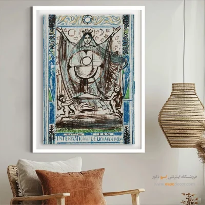 • استفاده از تابلویی با رنگ خنثی در پس‌زمینه: رنگ‌های سفید، خاکستری یا بژ، در حالی که رنگ اصلی دیوار یا رنگ‌های جزئی مبلمان و اکسسوری‌ها در طرح آن تکرار شده باشد. این روش تعادل را در فضا تضمین کرده و از شلوغی بصری جلوگیری می‌کند.