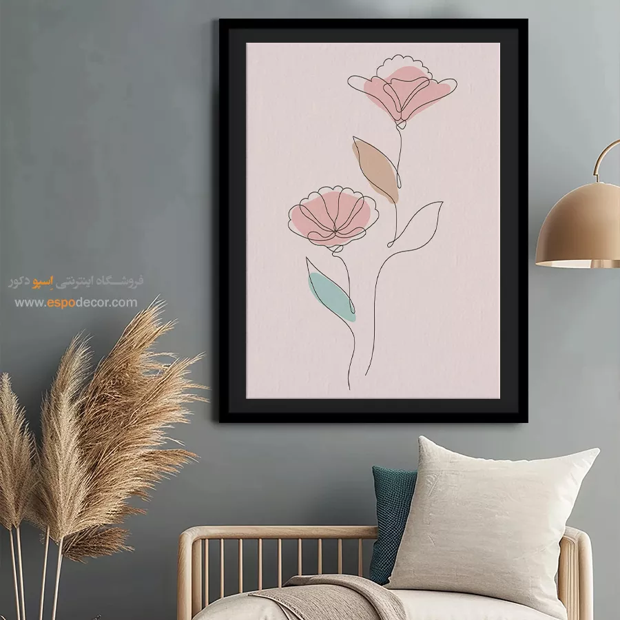 خرید تابلو مینیمال گل - فانتزی – تابلو طراحی خطی - اسپو دکور