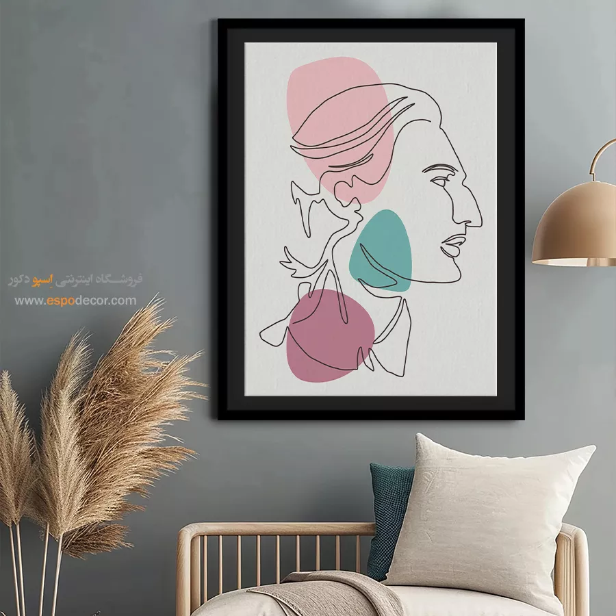 سبک مینیمال: تمرکز بر سادگی است. تابلوهای مینیمال آرت با خطوط ساده، اشکال هندسی و پالت رنگی خنثی (مانند سیاه، سفید، خاکستری یا بژ) ایدهآل هستند. این تابلوها اغلب بدون قاب یا با کلاف ساده نصب میشوند تا تأکید بر مفهوم و فضای خالی باشد.