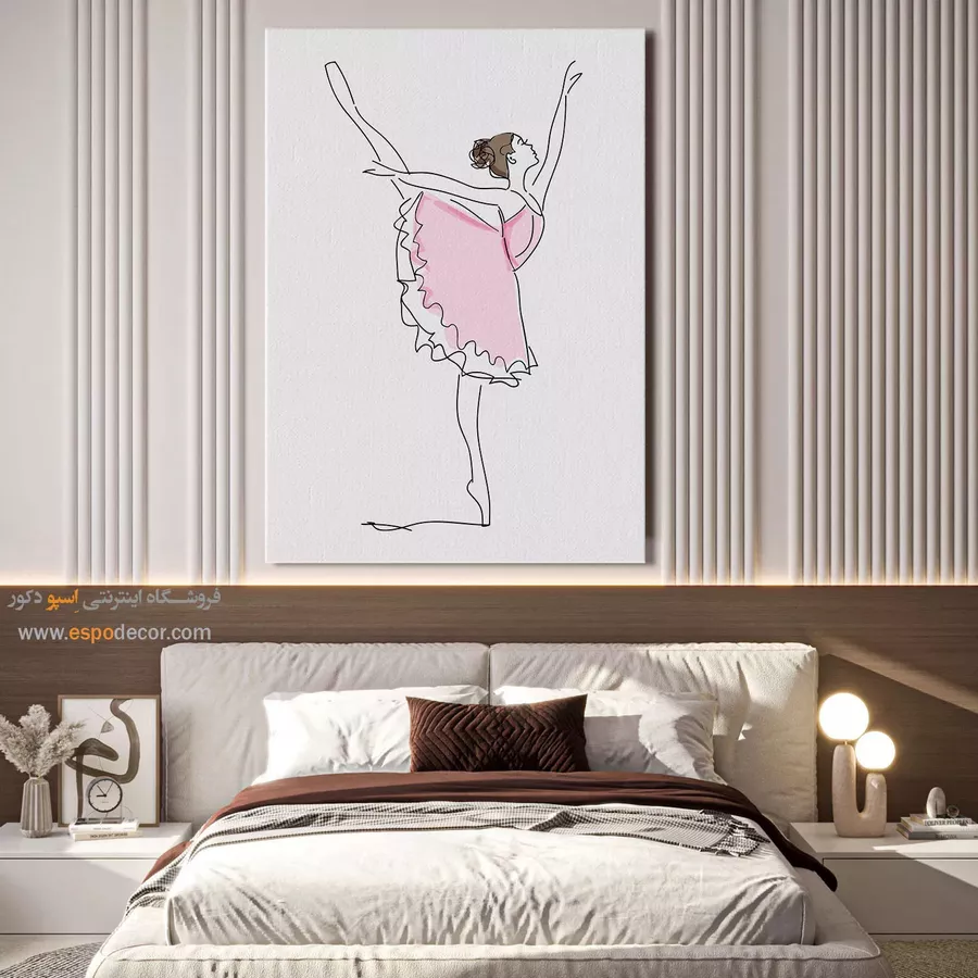 از نظر طرح، بهتر است به سراغ سبکهای مینیمال، خطی ساده (لاین آرت) یا انتزاعی خلوت بروید تا از شلوغی بصری که فضا را کوچکتر نشان میدهد، پرهیز شود.