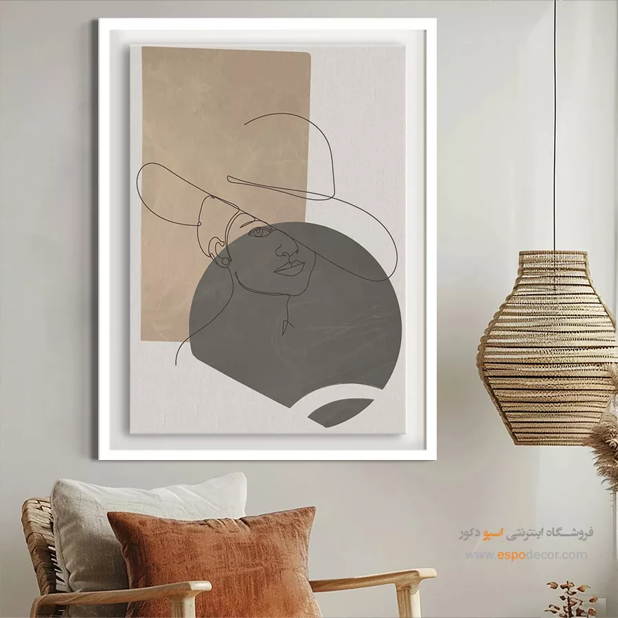 سبک مینیمال: تمرکز بر سادگی است. تابلوهای مینیمال آرت با خطوط ساده، اشکال هندسی و پالت رنگی خنثی (مانند سیاه، سفید، خاکستری یا بژ) ایدهآل هستند. این تابلوها اغلب بدون قاب یا با کلاف ساده نصب میشوند تا تأکید بر مفهوم و فضای خالی باشد.