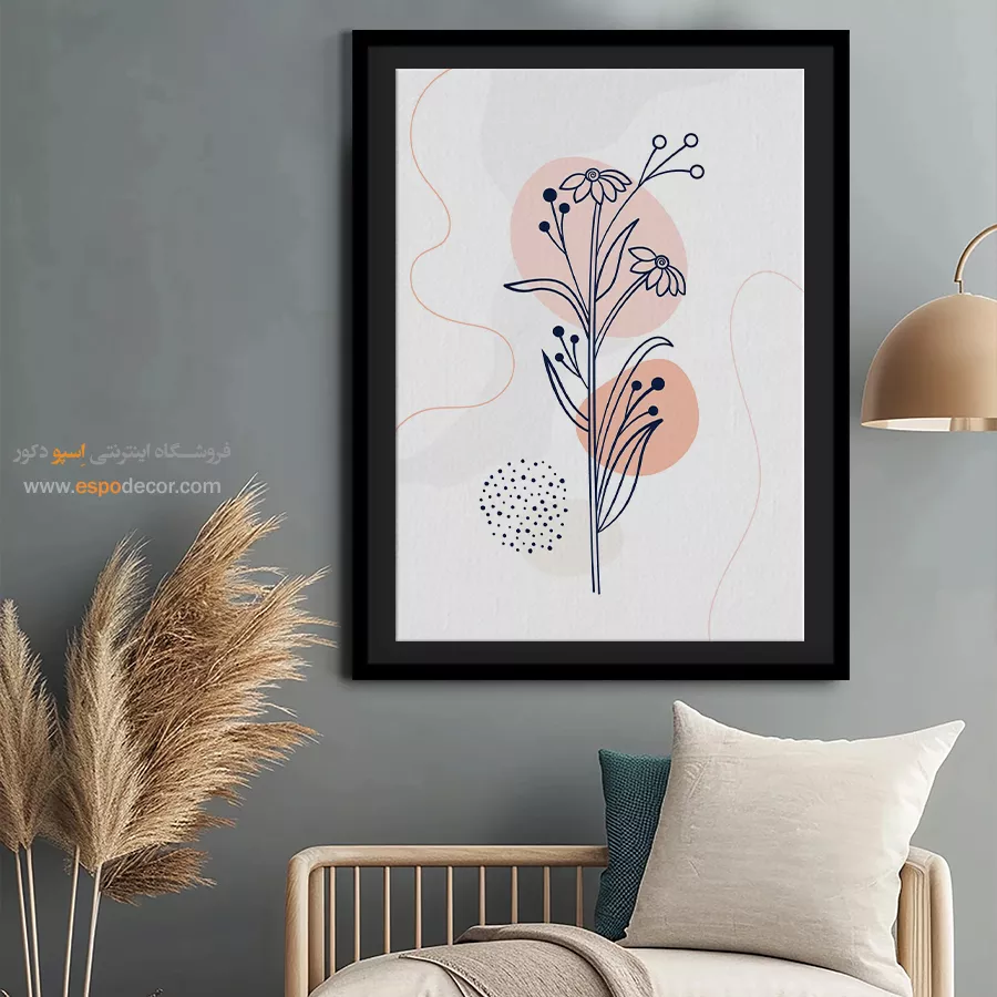 سبک مینیمال: تمرکز بر سادگی است. تابلوهای مینیمال آرت با خطوط ساده، اشکال هندسی و پالت رنگی خنثی (مانند سیاه، سفید، خاکستری یا بژ) ایده‌آل هستند. این تابلوها اغلب بدون قاب یا با کلاف ساده نصب می‌شوند تا تأکید بر مفهوم و فضای خالی باشد.