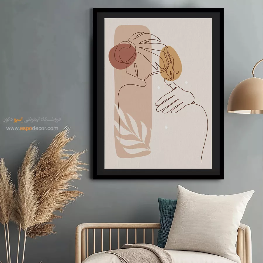 سبک مینیمال: تمرکز بر سادگی است. تابلوهای مینیمال آرت با خطوط ساده، اشکال هندسی و پالت رنگی خنثی (مانند سیاه، سفید، خاکستری یا بژ) ایدهآل هستند. این تابلوها اغلب بدون قاب یا با کلاف ساده نصب میشوند تا تأکید بر مفهوم و فضای خالی باشد.