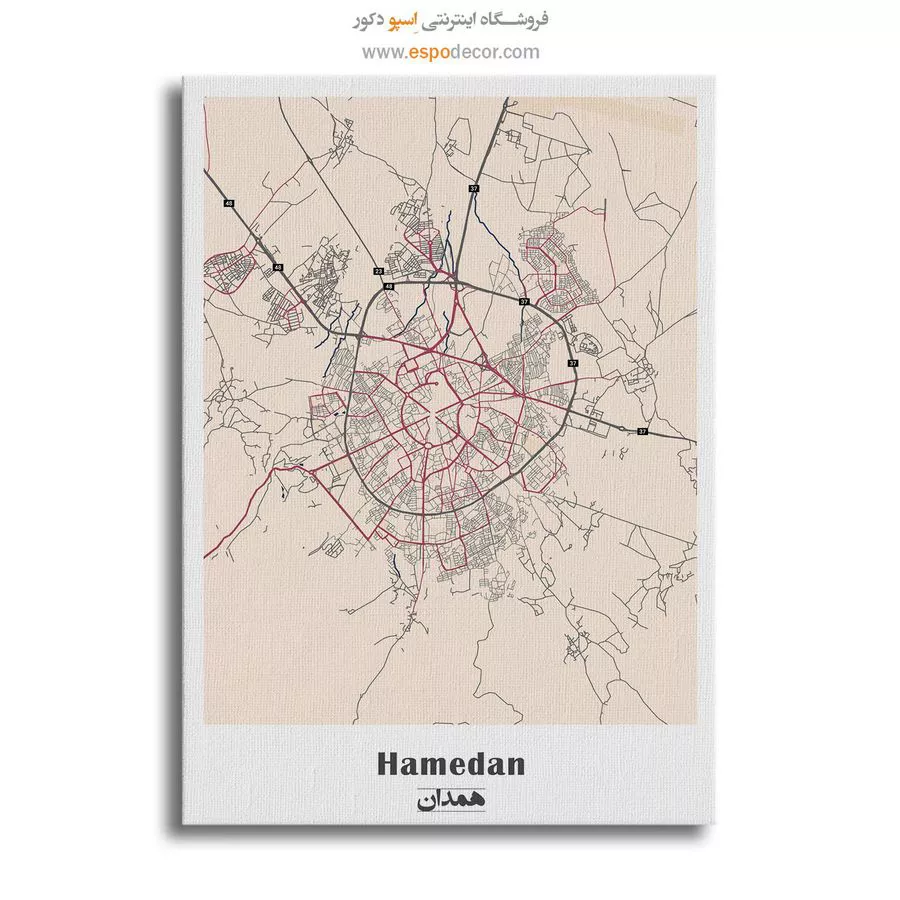 تابلو نقشه شهرهای ایران با طراحی مینیمال و رنگبندی مدرن، جلوهای متفاوت از جغرافیای شهری را به تصویر میکشد. ترکیب نقشه خطی دقیق با پسزمینهی ساده و نام دو زبانهی شهر، این تابلو را به انتخابی هنری و معنادار برای دکور خانه یا محل کار تبدیل کرده است. هر تابلو، داستانی بیکلام از شهر محبوبتان را روی دیوار حک میکند.