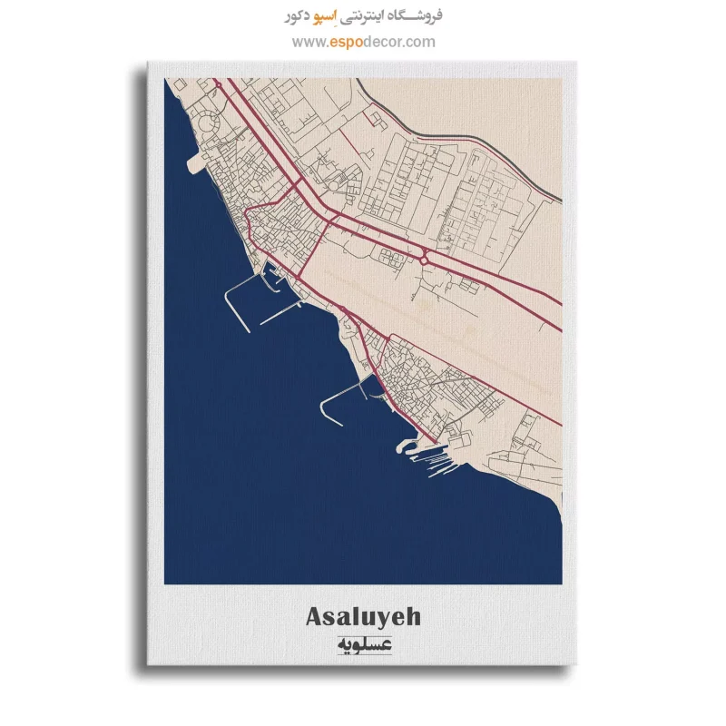 تابلو نقشه شهرهای ایران با طراحی مینیمال و رنگبندی مدرن، جلوهای متفاوت از جغرافیای شهری را به تصویر میکشد. ترکیب نقشه خطی دقیق با پسزمینهی ساده و نام دو زبانهی شهر، این تابلو را به انتخابی هنری و معنادار برای دکور خانه یا محل کار تبدیل کرده است. هر تابلو، داستانی بیکلام از شهر محبوبتان را روی دیوار حک میکند.