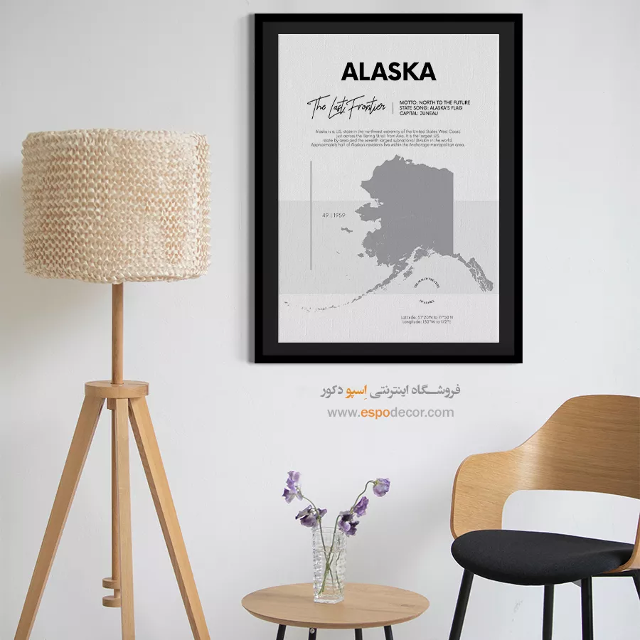 معمولاً شامل یک چاپ (روی کاغذ یا مقوا) است که داخل یک قاب چوبی، فلزی یا PVC قرار گرفته و برای محافظت از تصویر، با شیشه یا پلکسی پوشانده میشود، که این شیشه و قاب وزن و جلوهی رسمیتری به آن میبخشد.