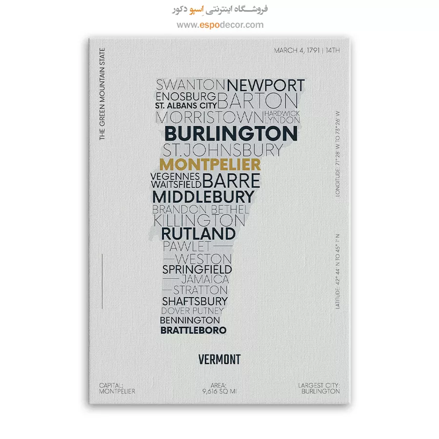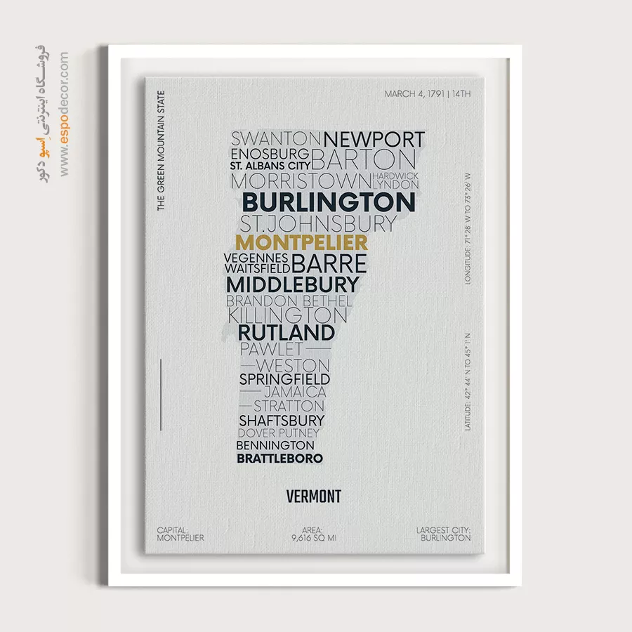 ورمونت – تابلو نقشه شهرهای جهان