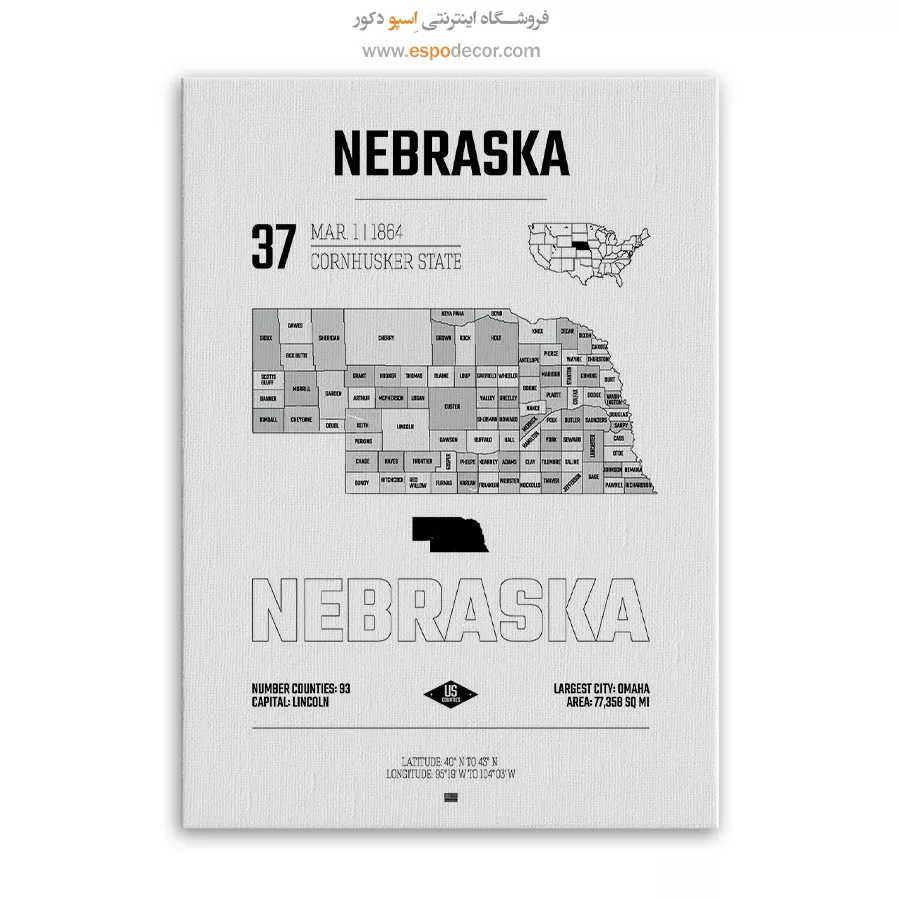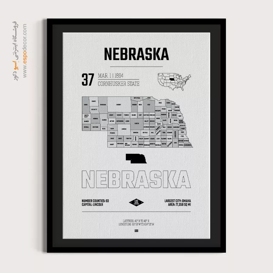 نبراسکا – تابلو نقشه شهرهای جهان