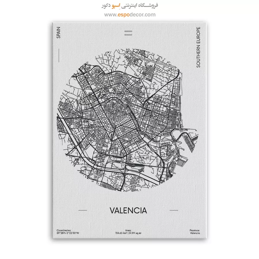 والنسیا اسپانیا – تابلو نقشه شهرهای جهان