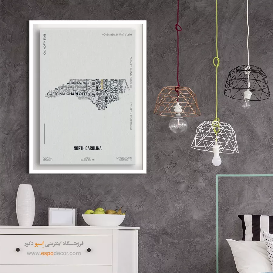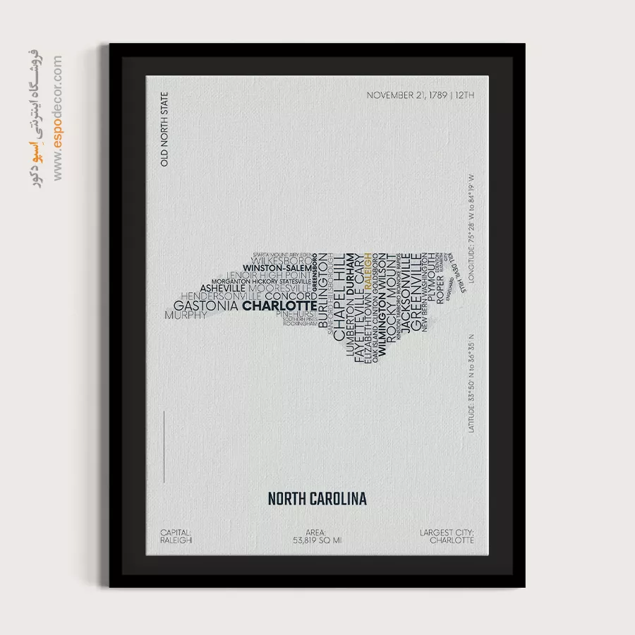 north carolina state – تابلو نقشه شهرهای جهان