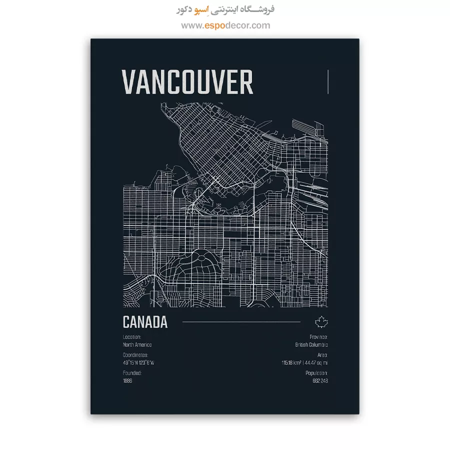 ‏vancouver – تابلو نقشه شهرهای جهان